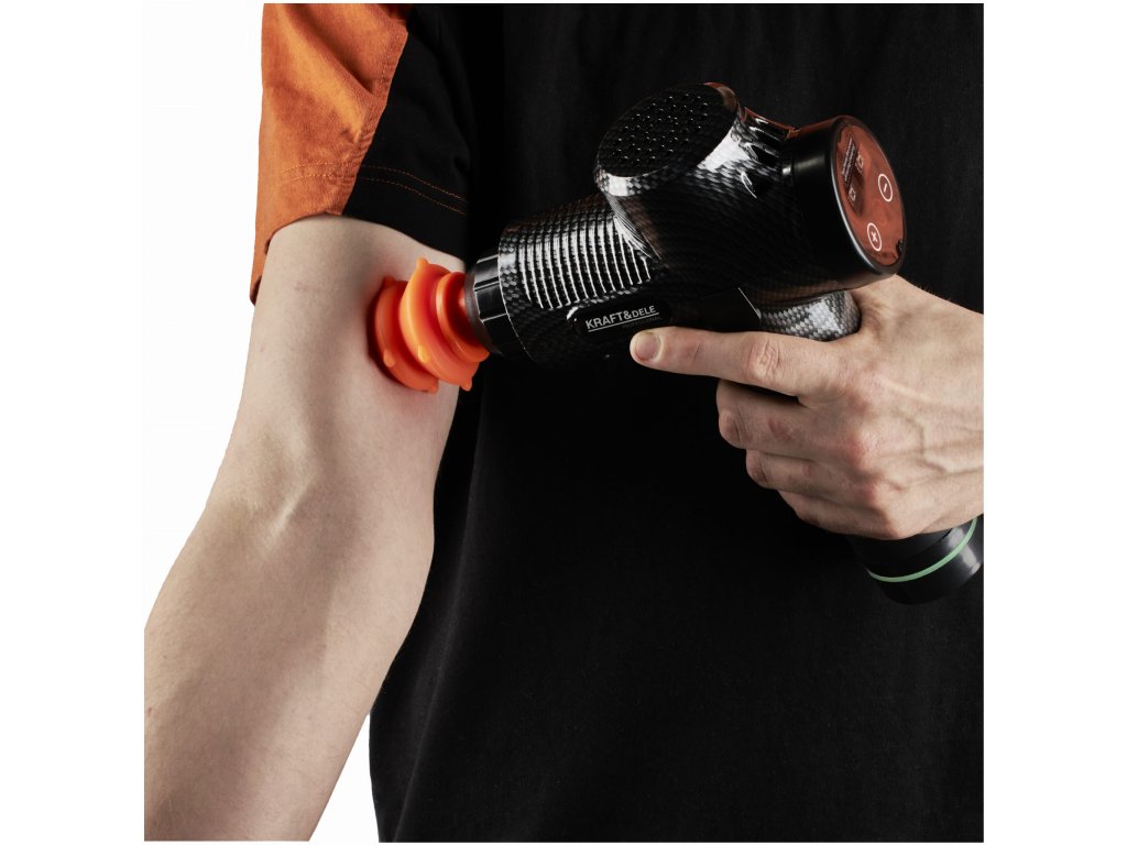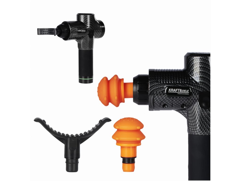 Többcélú masszírozó készülék a Kraft&Dele márkától, modell KD3081, mélymasszázsra szolgál. A mély és erőteljes magas frekvenciájú vibrációk stimulációja révén csökkenti az izom merevségét, ellazítja a puha szöveteket, csökkenti a fáradtságot és helyreállítja a fizikai kondíciót.
