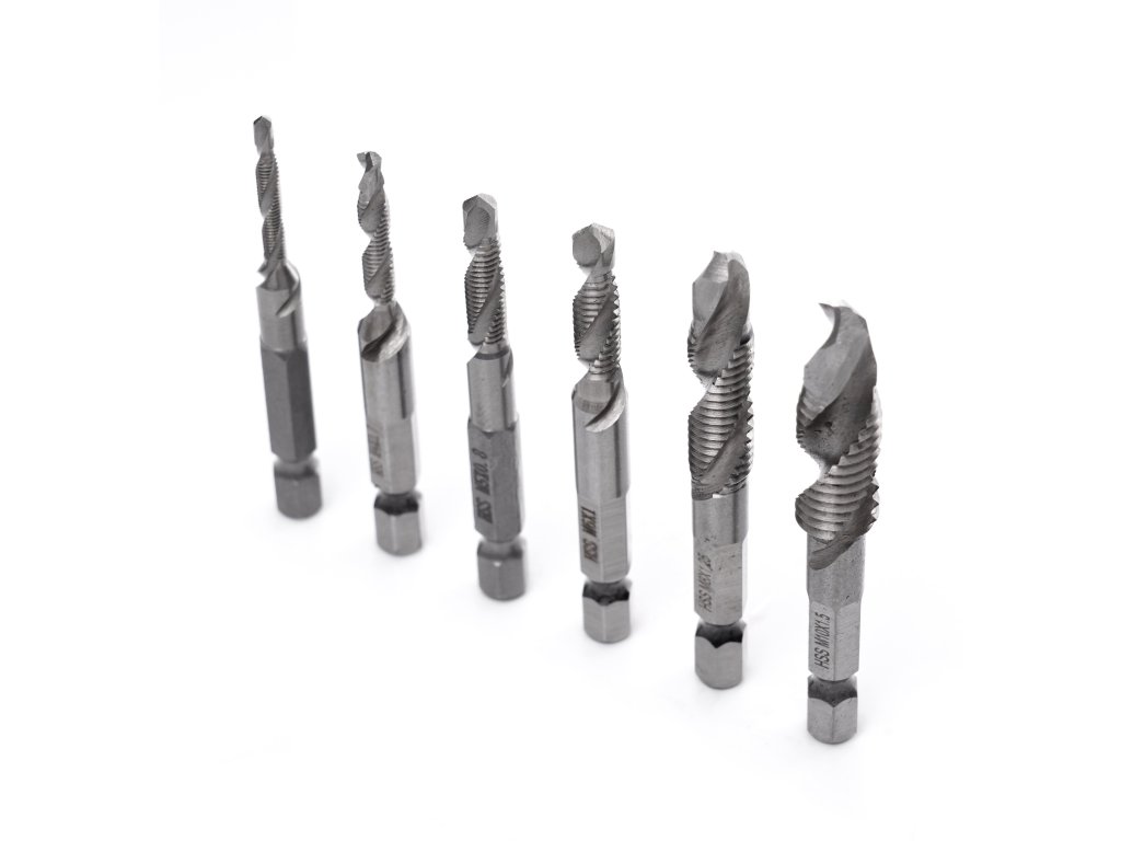Menetmetsző készlet 6 db KD980 — a KRAFT&DELE márkájú, gyorsacélból (HSS) készült 6 darabos fúrókészlet csiszolási eljárással készítve. Ajánlott a kombinált fúrók alacsony fordulatszáamon történő használata; munkavégzés közben hűtőfolyadék használata javasolt.