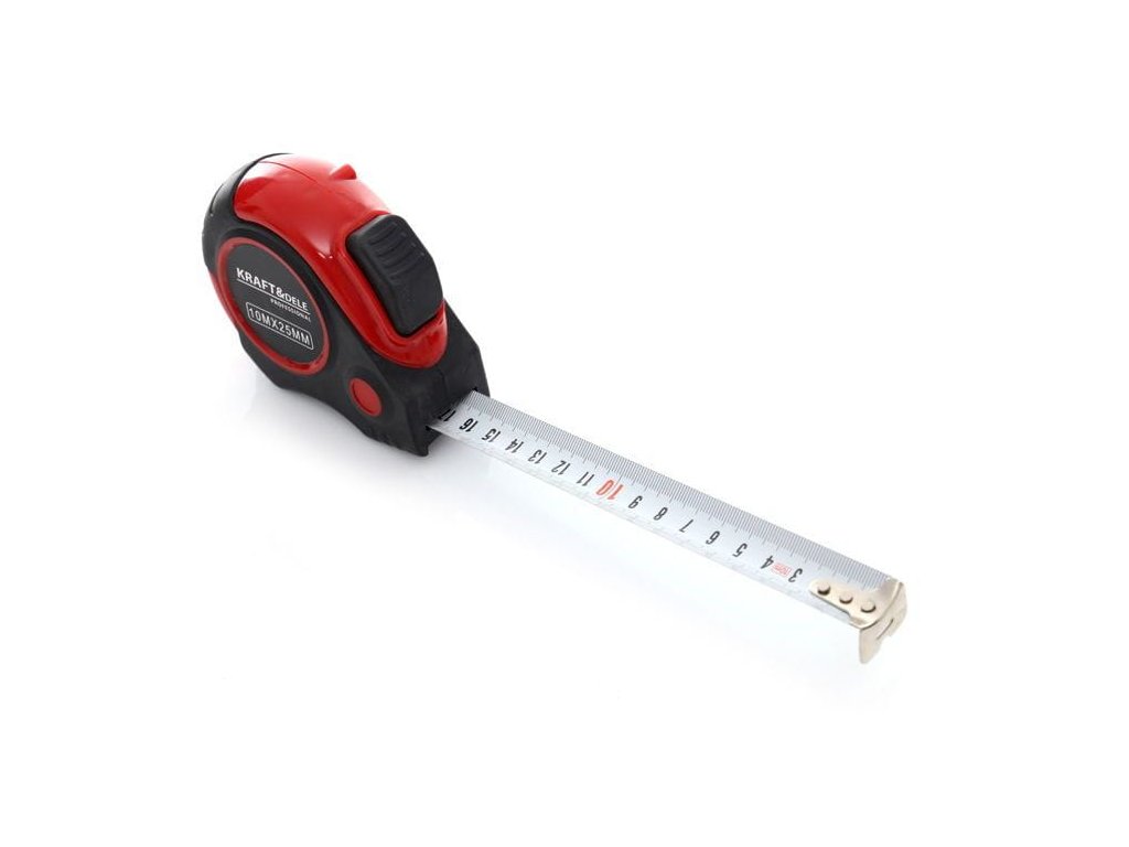 Professzionális mérőszalag a Kraft&Dele márkától. Kapható hossz- és szélességváltozatokban. A készüléket automatikus zár rendszerrel látták el; a kilövő gomb megnyomásakor a zár feloldódik, és a szalag automatikusan visszahúzódik. A szalagot csúszásmentes gumírozott réteg védi, amely minden munkakörülmény között biztos fogást nyújt. A szalag acélból készült.