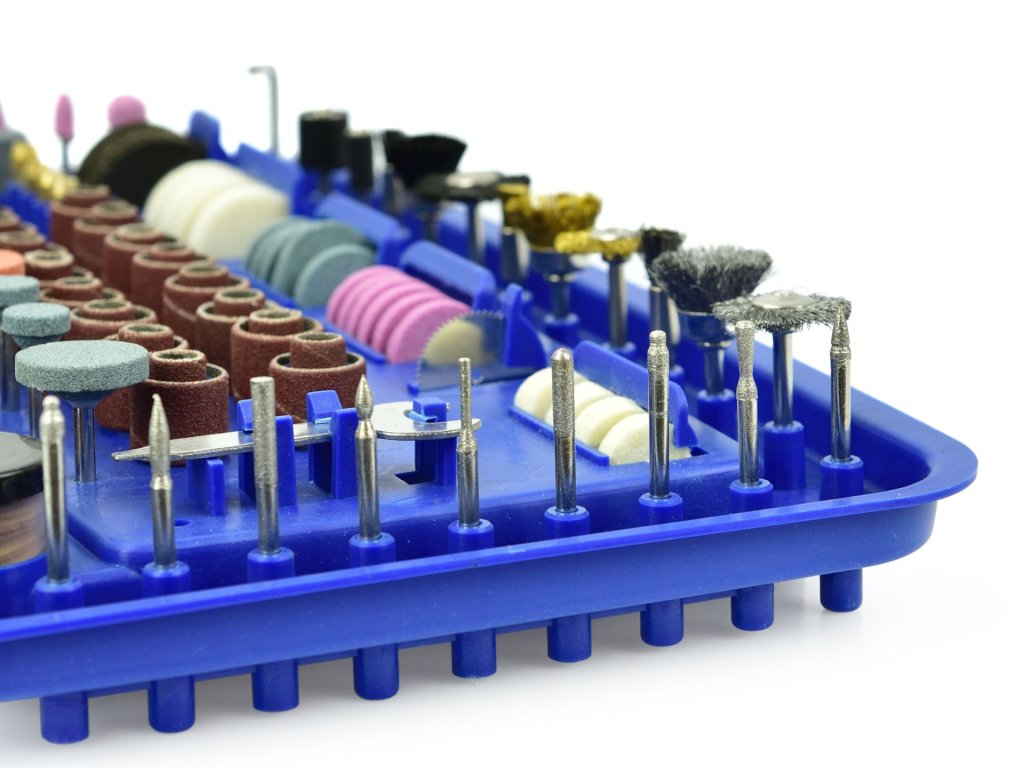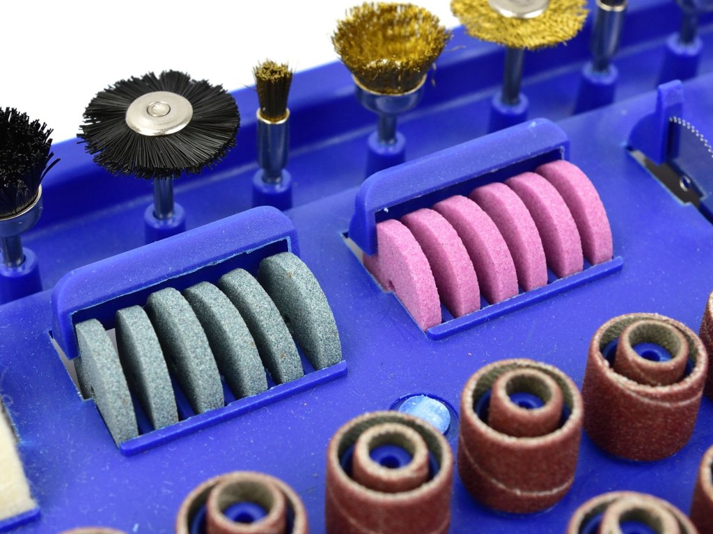 - Teljes kiegészítő szett tisztításhoz, polírozáshoz, csiszoláshoz, fúráshoz, kivágáshoz és vágáshoz