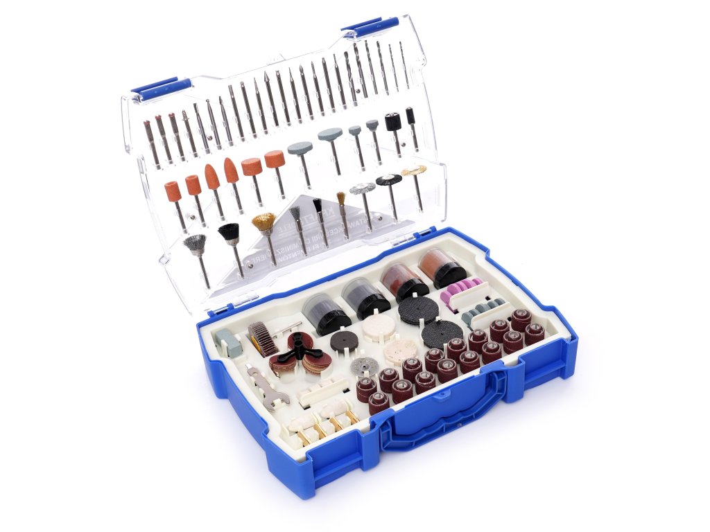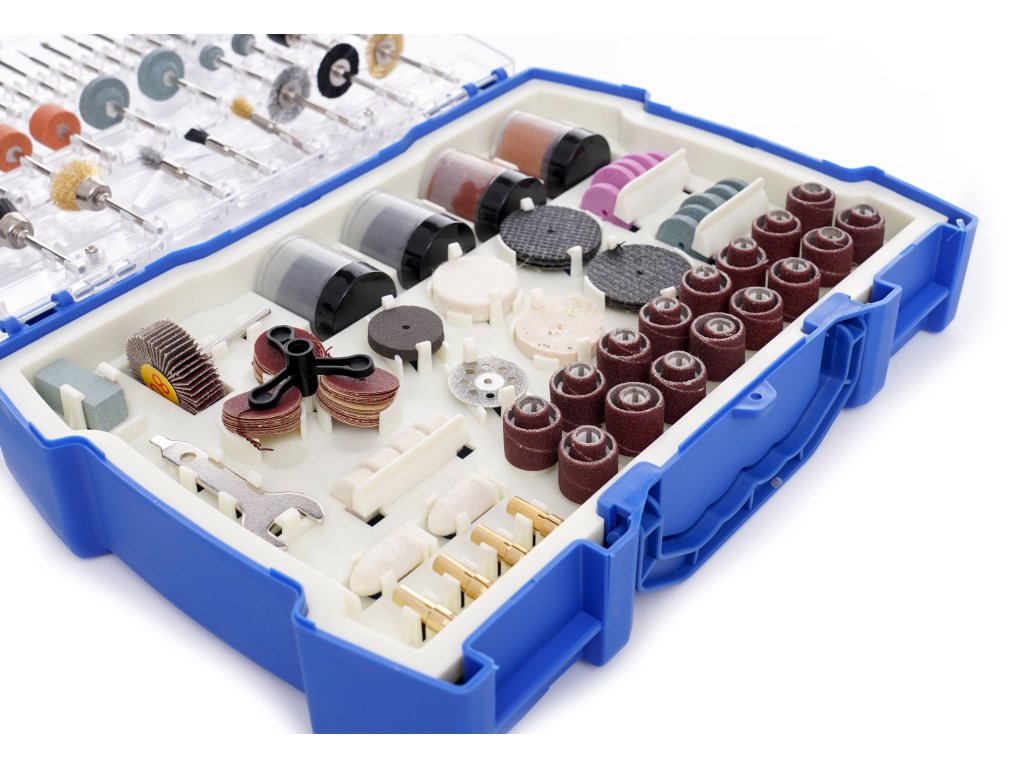 Minibruszhoz univerzális tartozékkészlet, amely 239 darab különféle tartozékot tartalmaz.
