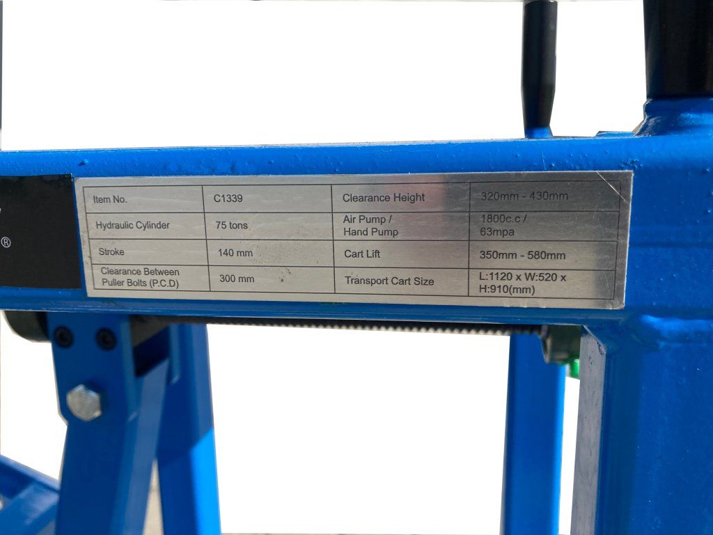 Professzionális hidraulikus prés csapok és csapok benyomására a kar szétszerelése nélkül. Nélkülözhetetlen teherautók, mezőgazdasági gépek javításához és egyéb műhelyi munkákhoz.