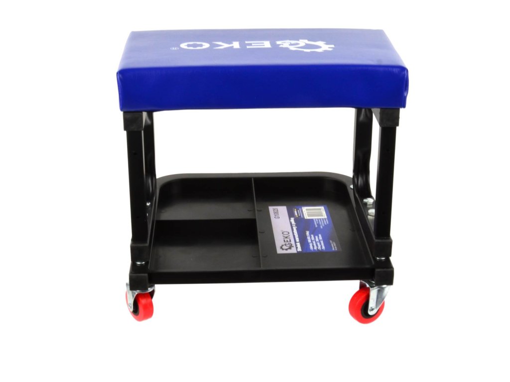 A szék négy teljesen forgatható kerekével rendelkezik, amelyek biztosítják a könnyű mobilitást. A teljesen párnázott ülés kényelmet nyújt munkavégzés közben, míg a megosztott polc lehetővé teszi a szerszámok egyszerű elérését. A szerkezet ellenálló acélból készült, garantálva a hosszú élettartamot és a stabilitást.