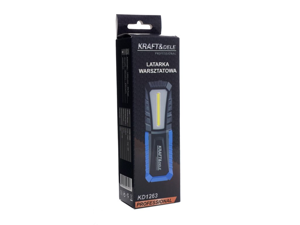 Multifunkcionális zseblámpa a Kraft&Dele márkától, KD1263 modell, mely a műhelyekben, szervizekben, kempingezésnél, táborokban és hasonló helyzetekben nyújt hasznát. Kényelmes és praktikus, bármilyen helyzetben jól jön, amikor szüksége van egy hordozható, kiegészítő fényforrásra.