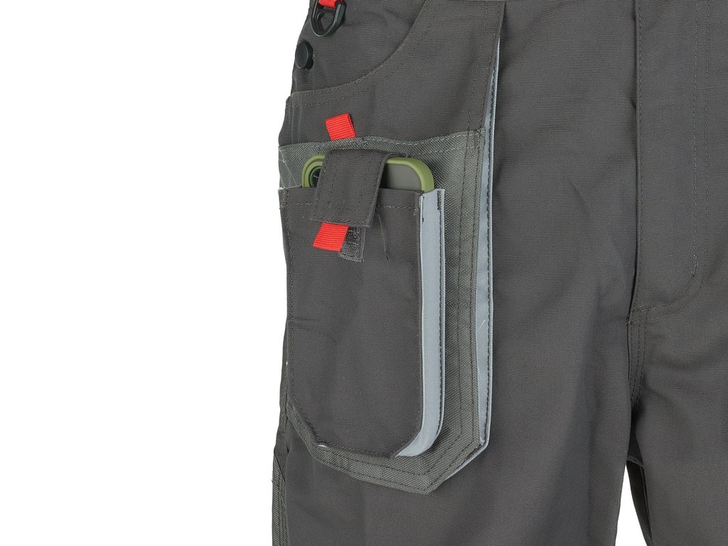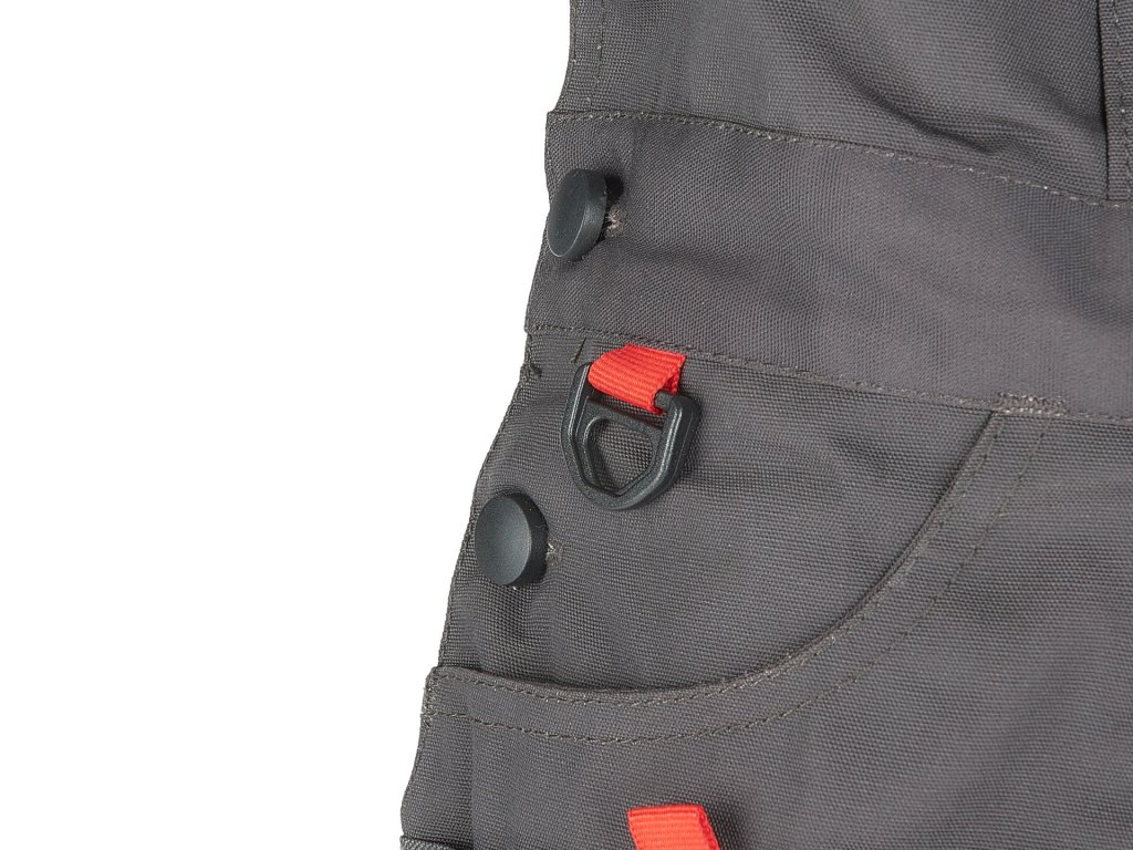 A nadrág 35% pamutból és 65% poliészterből készült, gramm váltás: 267 g/m². Összesen 11 zseb található rajta, ebből 8 tépőzárral záródik. Továbbá van rajta okostelefon zseb is. A nadrág hosszúsága állítható, míg a szélessége gombokkal és gumival szabályozható. A nadrág kulcstartóval és kalapácstartóval is rendelkezik. Az anyag megerősítése a térdeknél, a vállpántoknál és a zsebeknél helyezkedik el. A nadrág háromsoros varrással és reflexiós elemekkel is el van látva. Továbbá tartalmaz egy azonosító címkét és egy CE tanúsítványt.