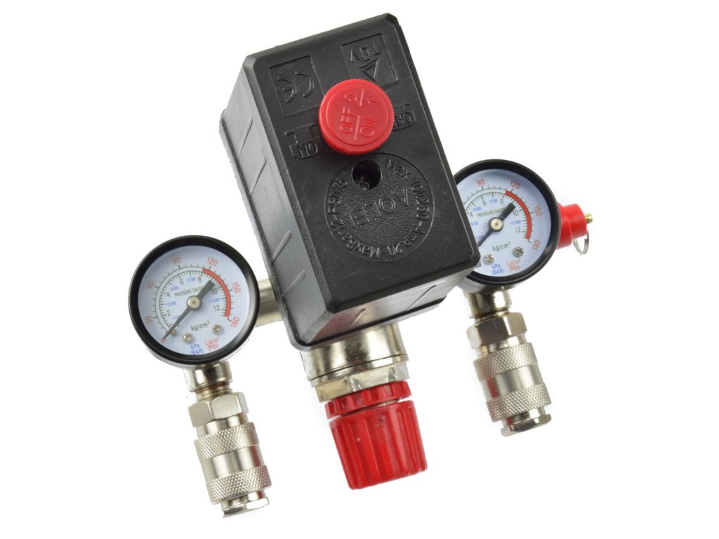 Nyomáskapcsoló reduktor 2 manométerrel ideális megoldást kínál a magyar piacon elérhető legtöbb kompresszorhoz. Ez a kapcsoló/reduktor 230V tápellátásra van tervezve, és széles spektrumú hasznos funkciókat kínál.