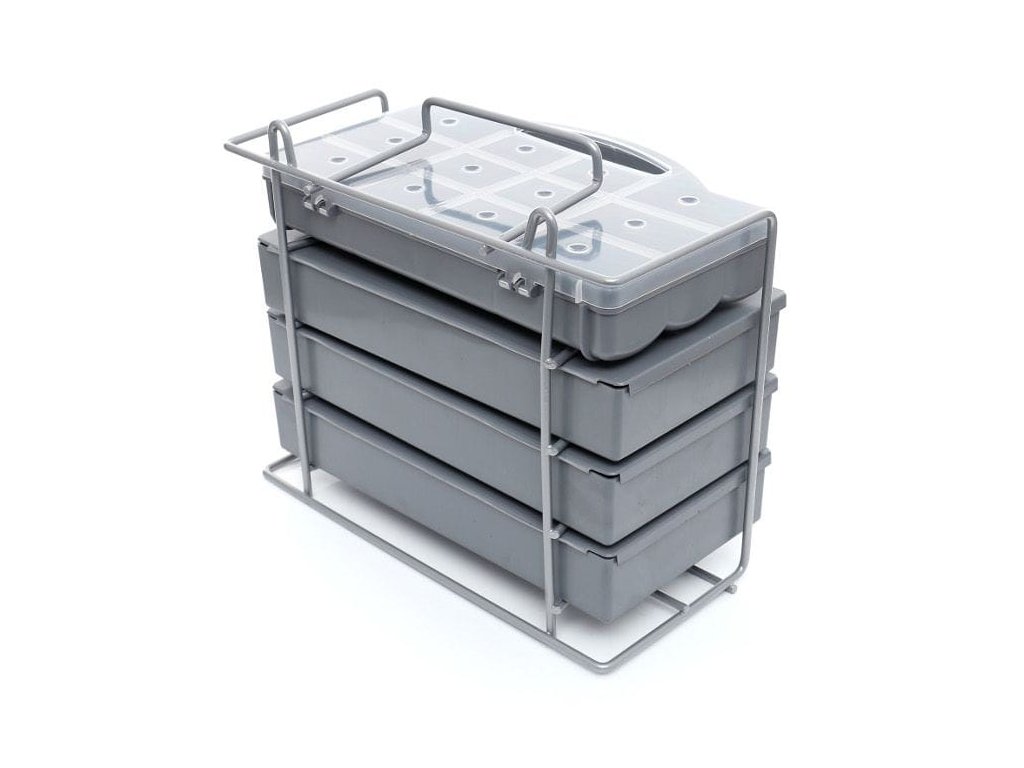 Teljes készlet műanyag csomagolásban, ahol minden gyűrűméretnek megvan a kijelölt helye.