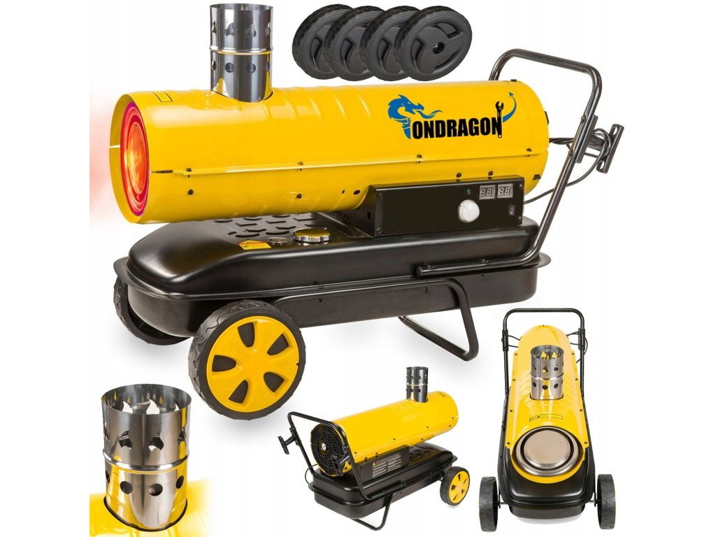A Powermat 40 kW teljesítményű professzionális olajkazán digitális vezérléssel és füstgázkivezetéssel a nagy terek, például csarnokok, műhelyek, raktárak vagy építkezések hatékony fűtésére szolgál. Az integrált kéménynek köszönhetően az összes füst elvezetésre kerül a fűtött helyről, és csak tiszta forró levegő áramlik a térbe. Az elektronikus termosztáttal ellátott LCD kijelző lehetővé teszi a pontos hőmérséklet-beállítást és az üzemanyag megtakarítását. A robusztus felépítés és a mobil kialakítás a legigényesebb körülmények között is lehetővé teszi a használatot.