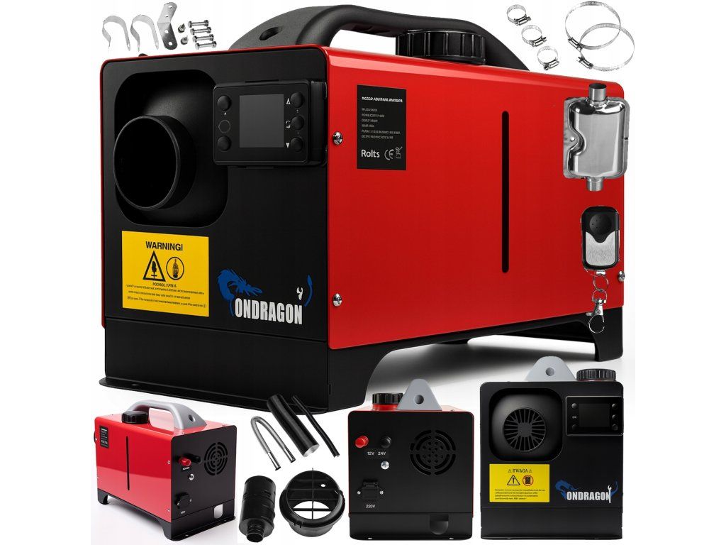 Megbízható és gazdaságos fűtési megoldás járművekhez, utánfutókhoz és építkezésekhez. A kondenzációs dízel fűtőegység Ondragon 9 kW egy nagy teljesítményű légfűtő, amely a motortól függetlenül működik. Ideális autókhoz, lakókocsikhoz, építőipari gépekhez, hajókhoz vagy lakókonténerekhez. Kompakt méretének, LCD kijelzőjének és távirányítójának köszönhetően könnyen telepíthető és kezelhető. A magas hőtartalmú hatékonyság a 12 V DC vagy 230 V AC tápellátási lehetőséggel kombinálva rugalmas használatot és gazdaságos működést biztosít.