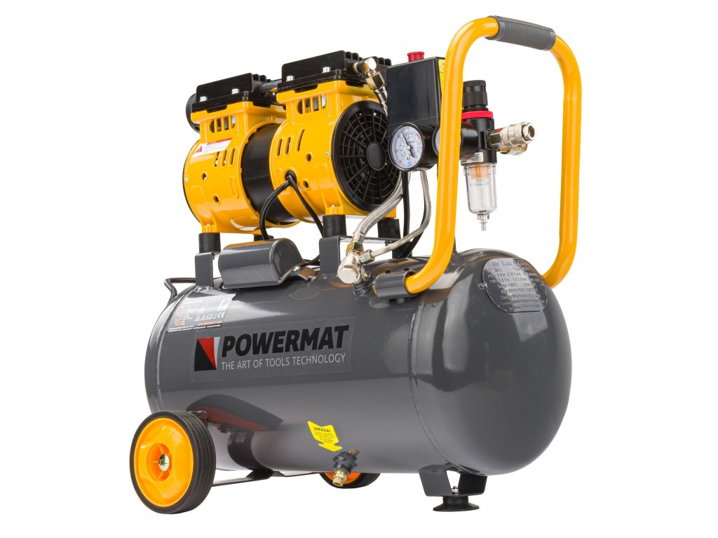 Olajmentes kompresszor PowerMat 24L egy erőteljes és hatékony eszköz, amely ideális széles körű alkalmazásokhoz. Ez a PM-KBO-24T modell magas teljesítményt biztosít, maximális kimeneti nyomással 8 bar, ami nagyszerű társsá teszi hobbicélokra és professzionális használatra egyaránt.