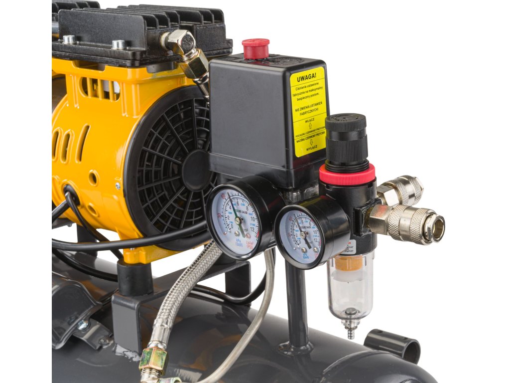 A nyomáskapcsoló beállítása maximális 8 bar nyomásra történt; amikor a tartályban a nyomás eléri ezt az értéket, a kompresszor automatikusan kikapcsol. Újraindítása akkor történik, amikor a tartályban a nyomás 6 bar alá csökken.