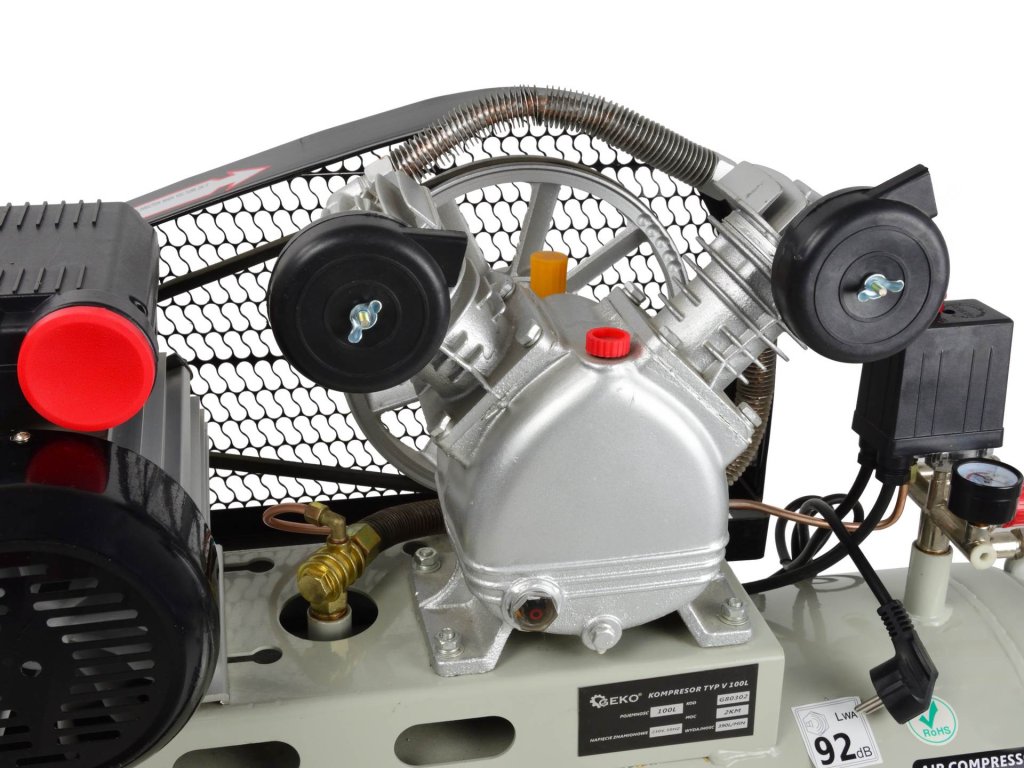 Olajos kompresszor 100L típus V egy erőteljes motorral rendelkezik, amelynek teljesítménye 2 HP, és egy 100 literes tartállyal van felszerelve. A nyomásszabályozónak köszönhetően könnyedén beállíthatja a tartályban lévő nyomás értékét az igényeinek megfelelően.