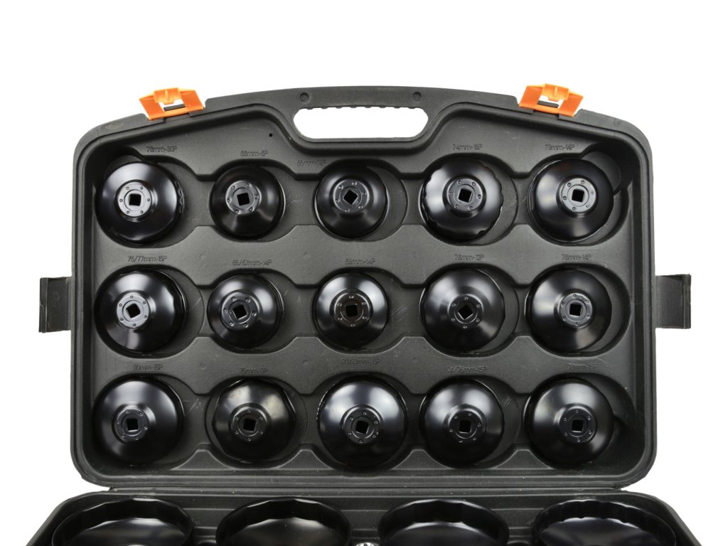 Olajszűrő kulcskészlet 30 db ideális a legtöbb európai, amerikai és ázsiai piacon forgalmazott személygépkocsihoz. Ez a termék úgy lett tervezve, hogy megkönnyítse a szűrők eltávolítását és felszerelését nehezen hozzáférhető helyeken, és 3/8"-os vagy 1/2"-os racsnis meghajtóval használható. Az egész készlet praktikus műanyag tárolóban található.
