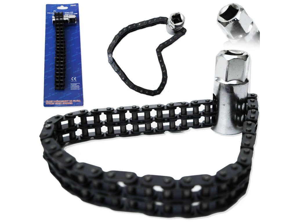 A magas minőségű olajszűrő lánckulcs ideális választás olajszűrők leszereléséhez, 21 mm-től 120 mm átmérőig. Az 1/2" univerzális rögzítési rendszer és a 24 mm-es kulccsal való használat lehetősége révén ez az eszköz mindenféle acél szűrőhöz alkalmas. A rugalmas felépítés és a méretállítási lehetőség megkönnyíti a munkát nehezen hozzáférhető helyeken is.
