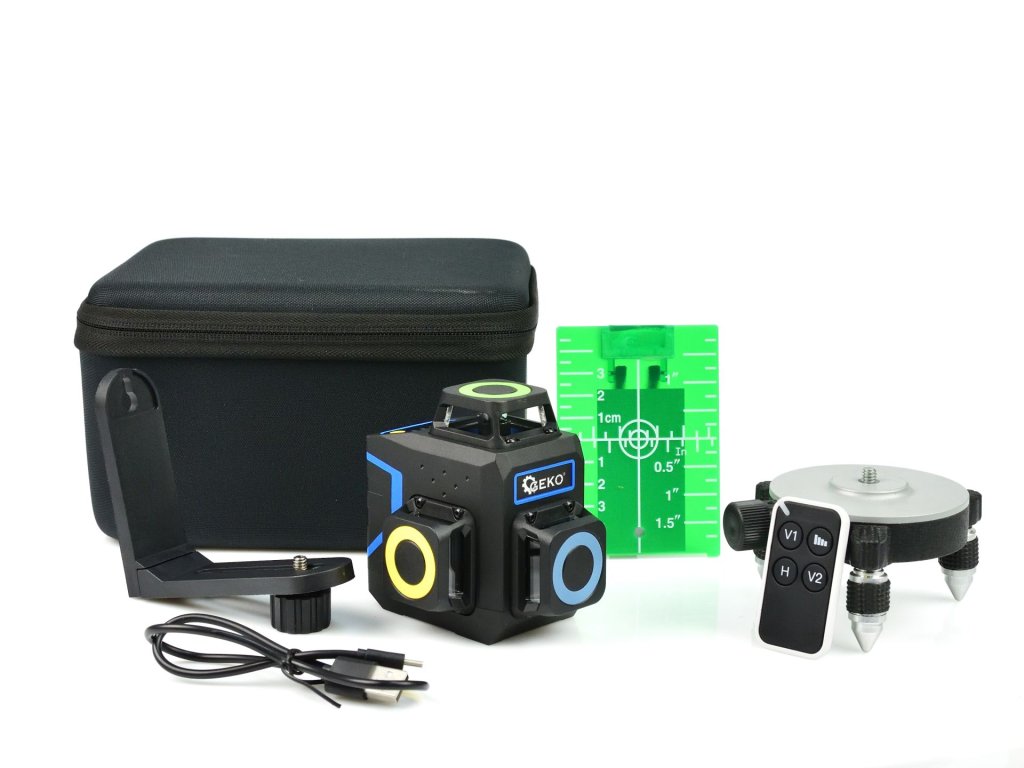 Önjavító üzemmódban a készülék automatikusan létrehozza a vízszintes és függőleges vonalakat. Ha az érzékelő 4°-nál nagyobb eltérést észlel, ezt megszakított lézersugárral jelzi. Az inga blokkolása lehetővé teszi a ferde vonalakhoz való üzemmódba való átkapcsolást. A csomag tartalmaz egy forgatható állványt három állítható támaszponttal, mágneses tartót, távirányítót, lézercélt és töltőkábel. Mindez egy különleges hordtáskába van csomagolva, amely biztosítja a biztonságos szállítást és tárolást.