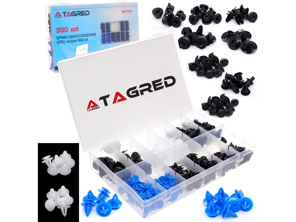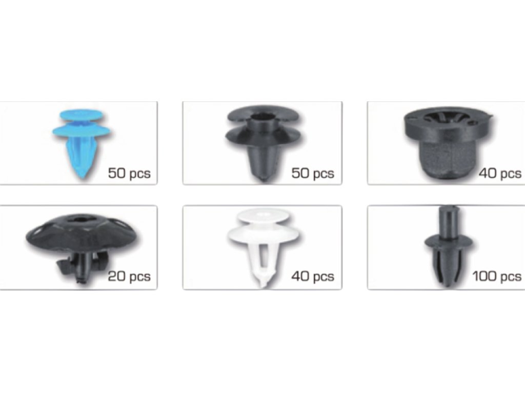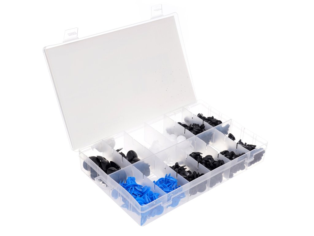 Opel autós kapcsok, rögzítőelem tartalmaz 6 különböző típusú kapcsot, összesen 300 db. Mindent praktikus tároló dobozba csomagoltunk, amely rekeszekkel segíti a szervezést és a hozzáférést az egyes kapcsokhoz.