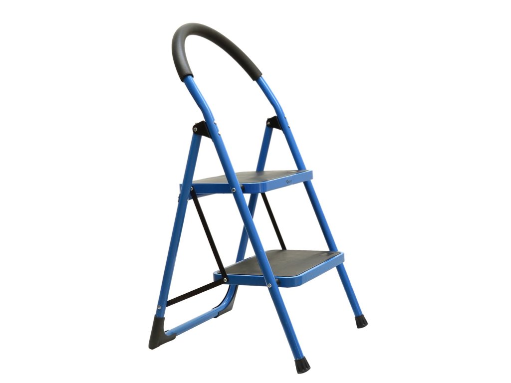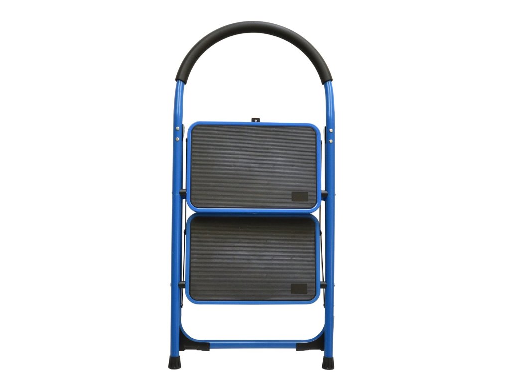 Összecsukható kétszintes létra G02435 egy praktikus eszköz különböző magasságú munkák elvégzésére. Ez a kék létra fekete elemekkel elegáns és stílusos megjelenést kölcsönöz.