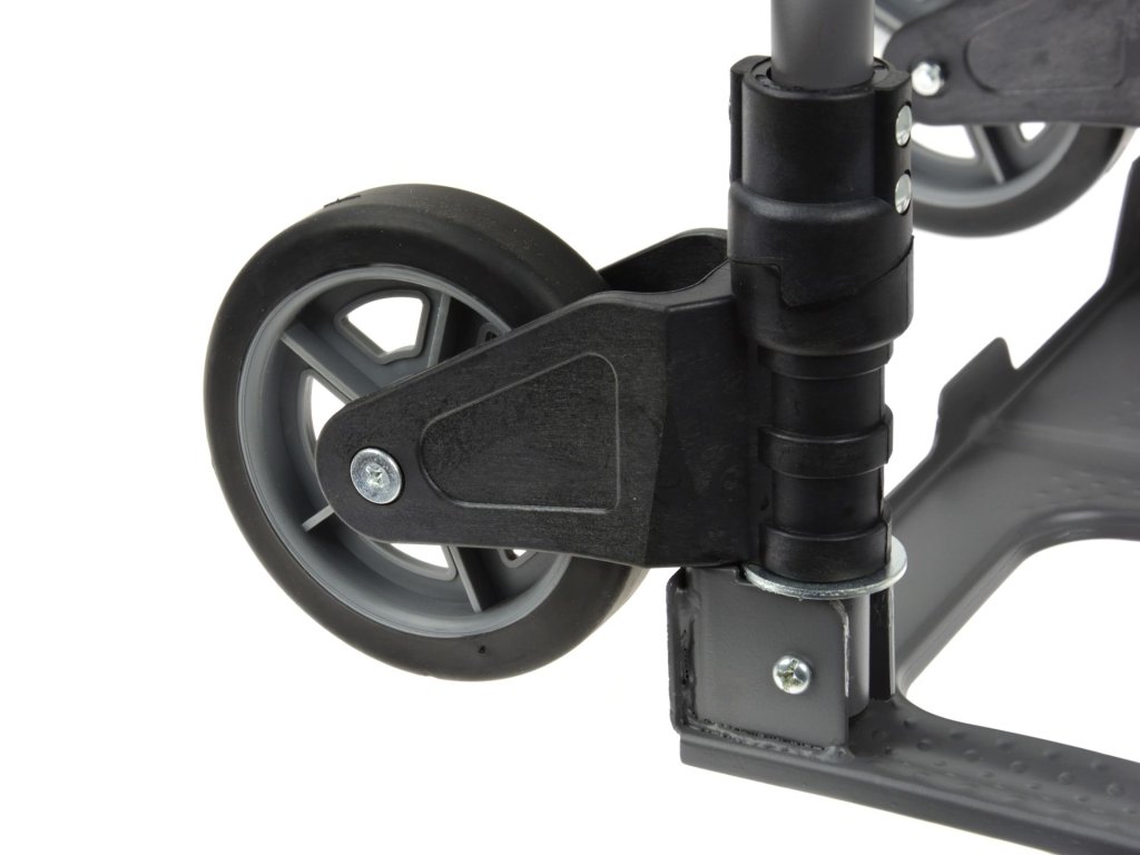 A kocsihoz 120 mm átmérőjű gumi kerekek tartoznak, amelyek zökkenőmentes és csendes mozgást biztosítanak különböző felületeken.