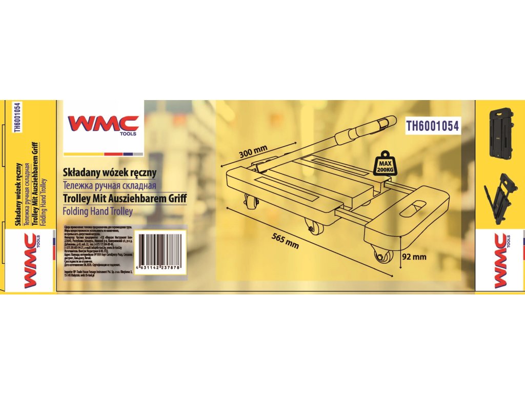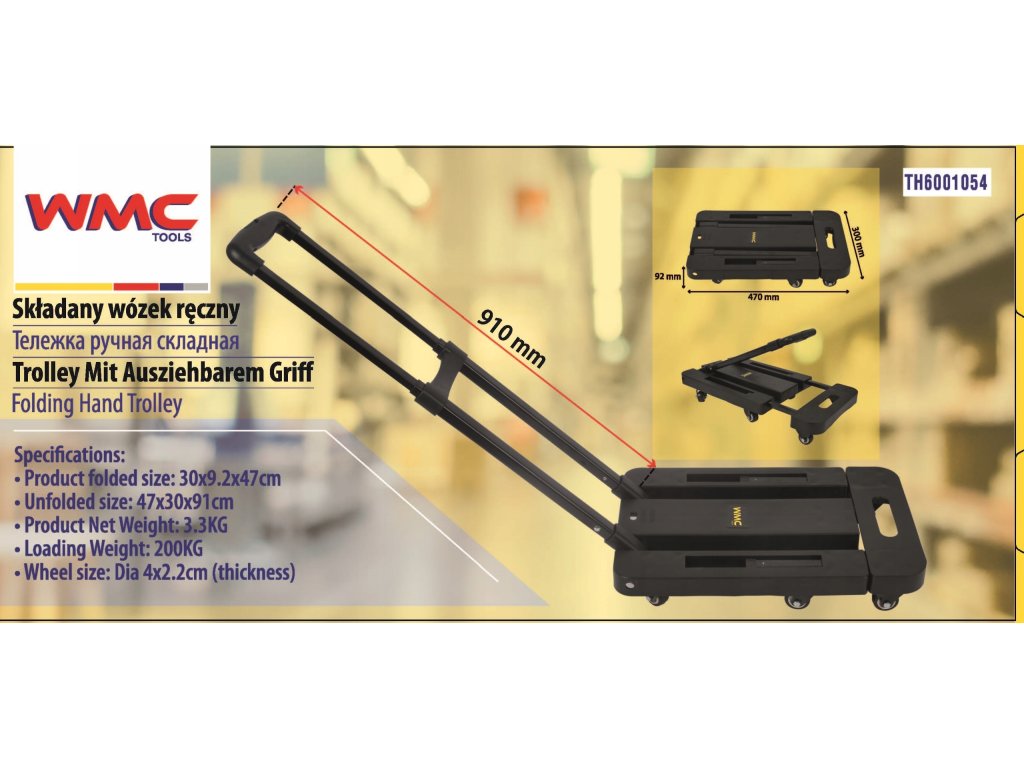 A tartós és sokoldalú WMC szállítókocsi, amelynek maximális teherbírása 200 kg, kötelező darab minden üzletben, műhelyben, garázsban, raktárban és bárhol, ahol árukat kell szállítani.