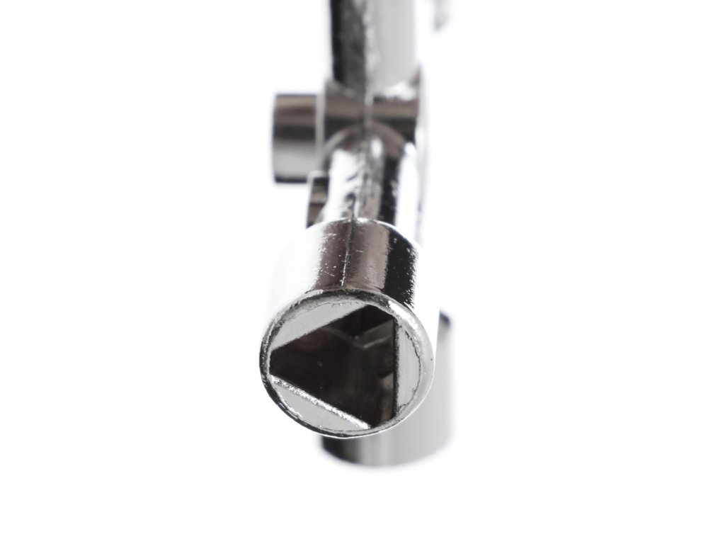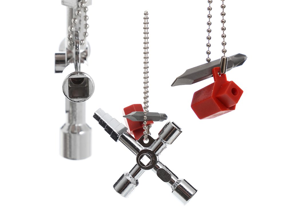Keresztkulcs a szekrényekhez ideális eszköz a gázórák, vízmérők, villanyórák, klímaberendezés alkatrészek és záró szelepek, valamint hálózati konzolok és egyéb készülékek nyitásához. Ez a többfunkciós kulcs szelepek és szivattyúk nyitására is használható, így nélkülözhetetlen segéd az sokféle helyzetben.