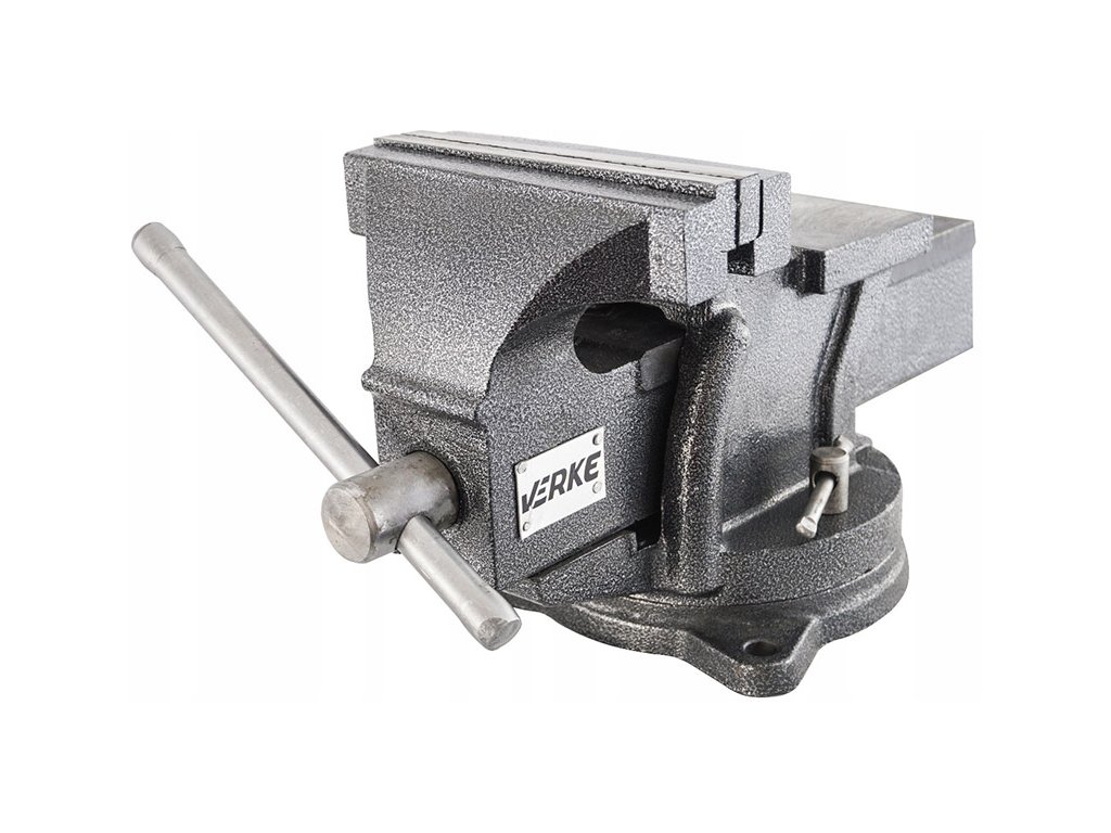 Professzionális szorító a VERKE márkától. Kifejezetten igényes műhelyek számára készült, a zártechnikai, általános mechanikai és autószervizek igényeit kiszolgálva, precízen dolgozva a legjobb anyagokból. Különösen univerzális a forgatható funkciójának köszönhetően. A szorító teste szürke öntvényből készült, 200 mm-es cserélhető pofák és edzett acélból készült üllő jellemzi. A szorító forgatható alapra van szerelve. A felülete fekete kalapácslakkal bevont.
