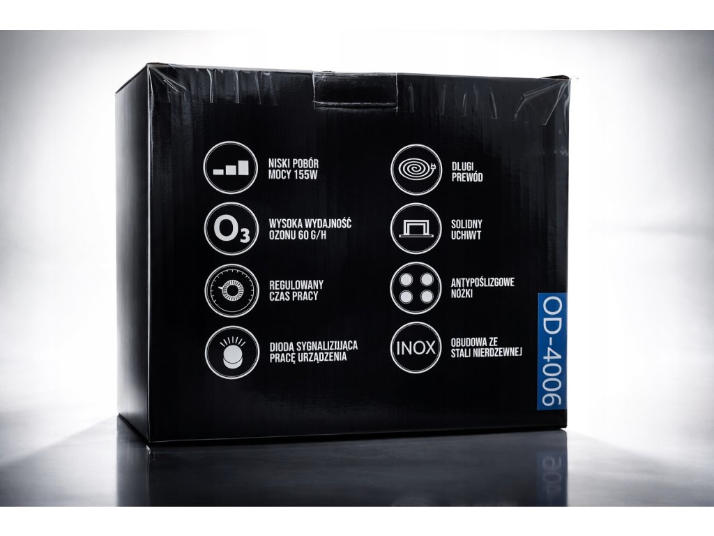 Az erőteljes ózonfejlesztő gyors és hatékony szagtalanításra, baktériumok, vírusok és allergének eltávolítására szolgál zárt terekből. A magas, óránként 60 000 mg ózon kibocsátására képes teljesítmény révén alkalmas helyiségek, autóbelsők, légkondicionáló rendszerek és műszaki helyiségek fertőtlenítésére. A készülék a beépített időzítő segítségével önállóan működik, és a beállítás után nem igényel további kezelést. A kompakt kialakítás, a beépített ventilátor és a stabil lábak biztosítják a könnyű és biztonságos használatot.