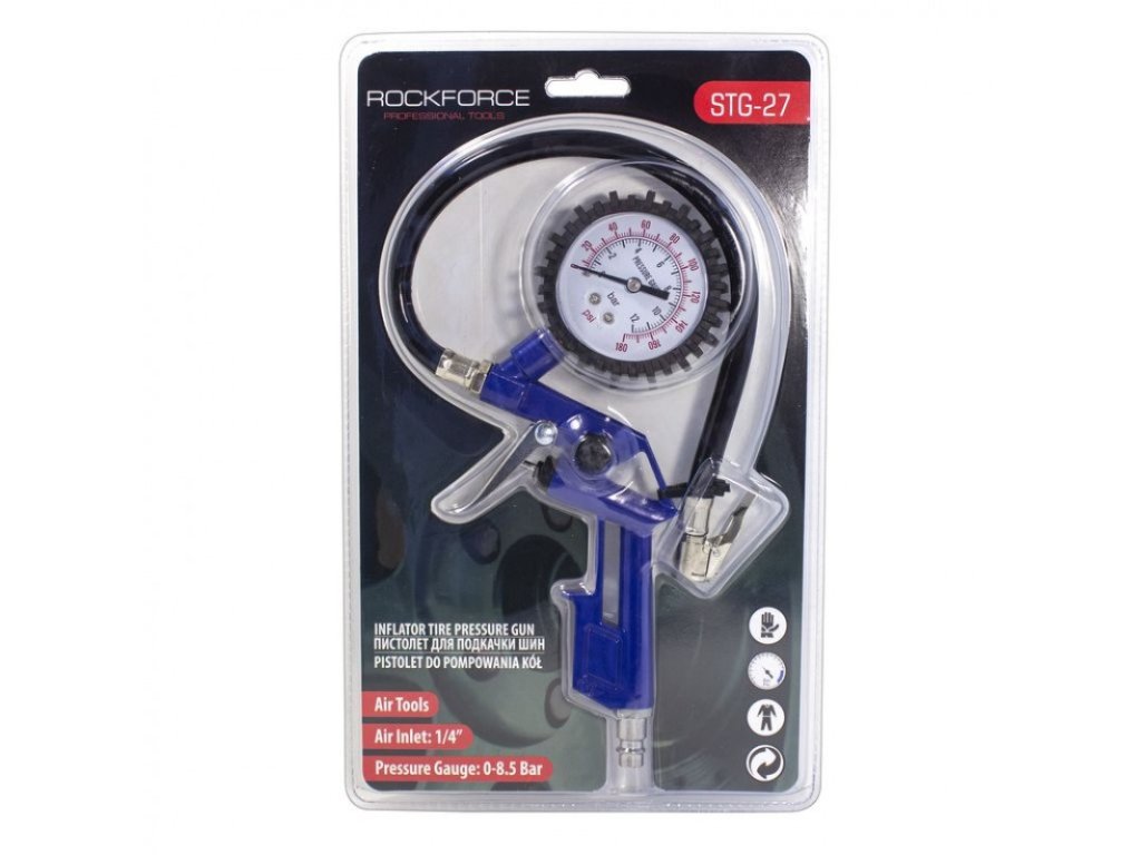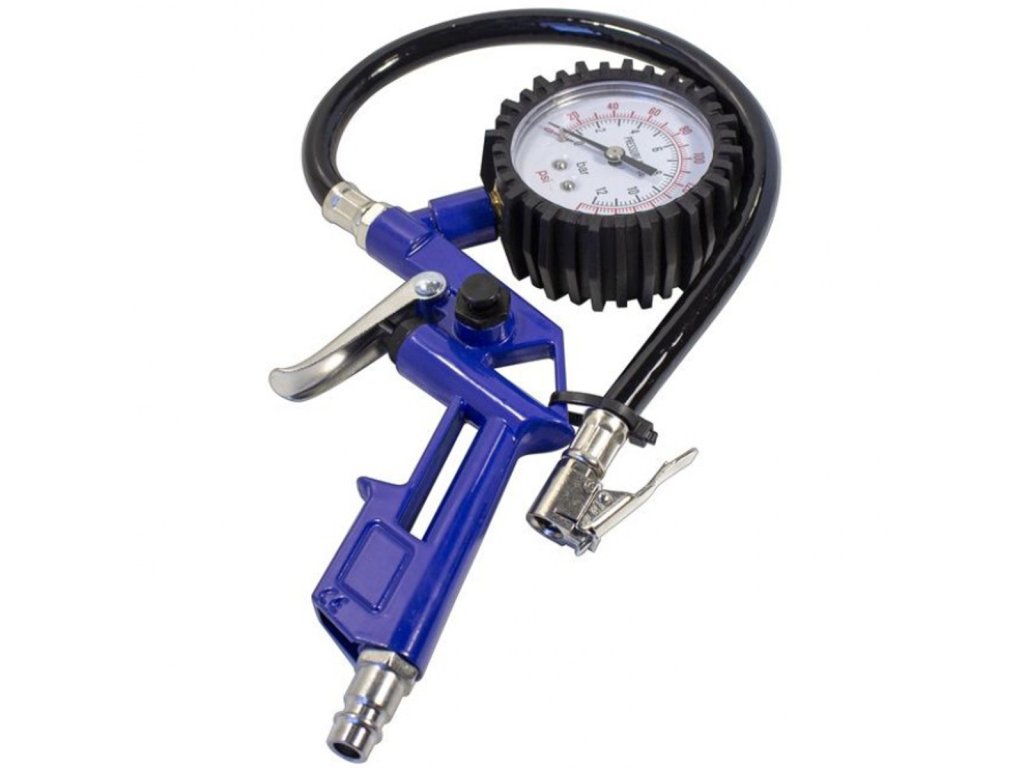 A nyomásmérővel ellátott gumiabroncs-felfújó pisztoly ideális mind a gumiabroncsok felfújásához , mind a gumiabroncsnyomás ellenőrzéséhez .