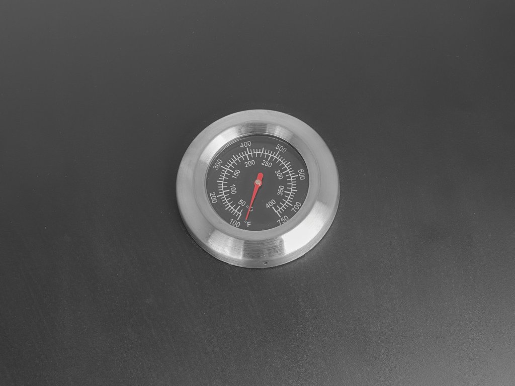 Praktikus megoldások: A grill a kényelme érdekében lett tervezve. Tágas tárolóhellyel rendelkezik a grillezéshez szükséges eszközök és fűszerek számára. Minden, amire szüksége van, kéznél van! A fedélbe épített hőmérő pedig lehetővé teszi a hőmérséklet egyszerű ellenőrzését grillezés közben.