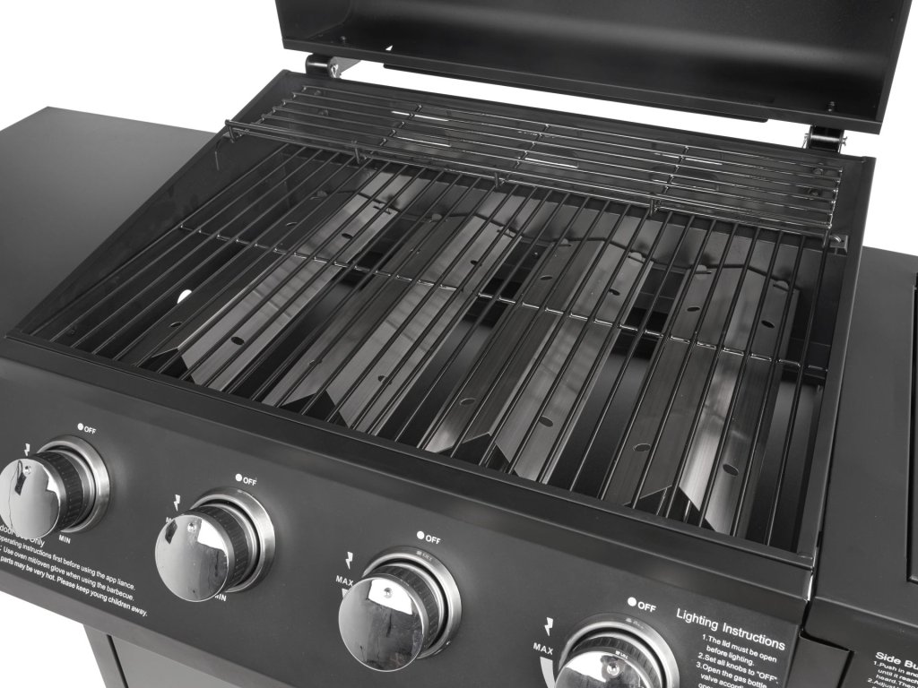 Grillezés sokoldalúsága: Gázgrillünk négy fő égőfejjel rendelkezik, amelyek egyenletesen osztják el a hőt. Továbbá van egy fazék- vagy vízforraló égő is, így egyszerre grillezhet és főzhet. Nincs több kulináris korlátozás!
