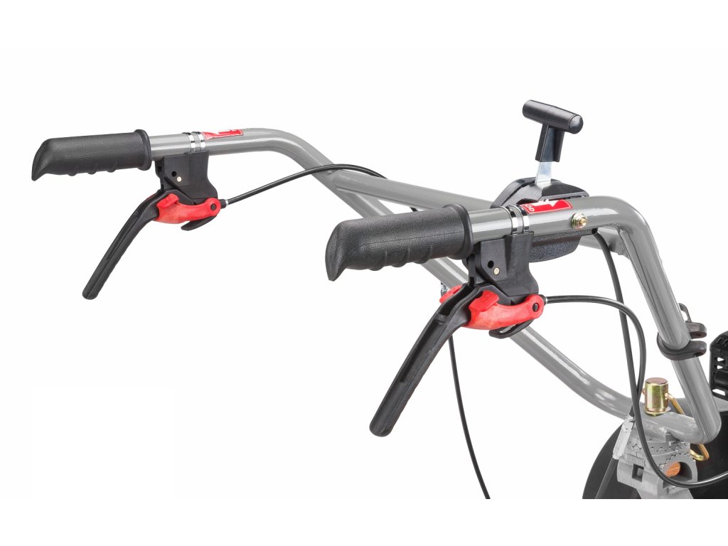 A fogantyúkon találhatóak a előre és hátra haladás aktiválására szolgáló vezérlők, valamint a motor gázkar állító karja.