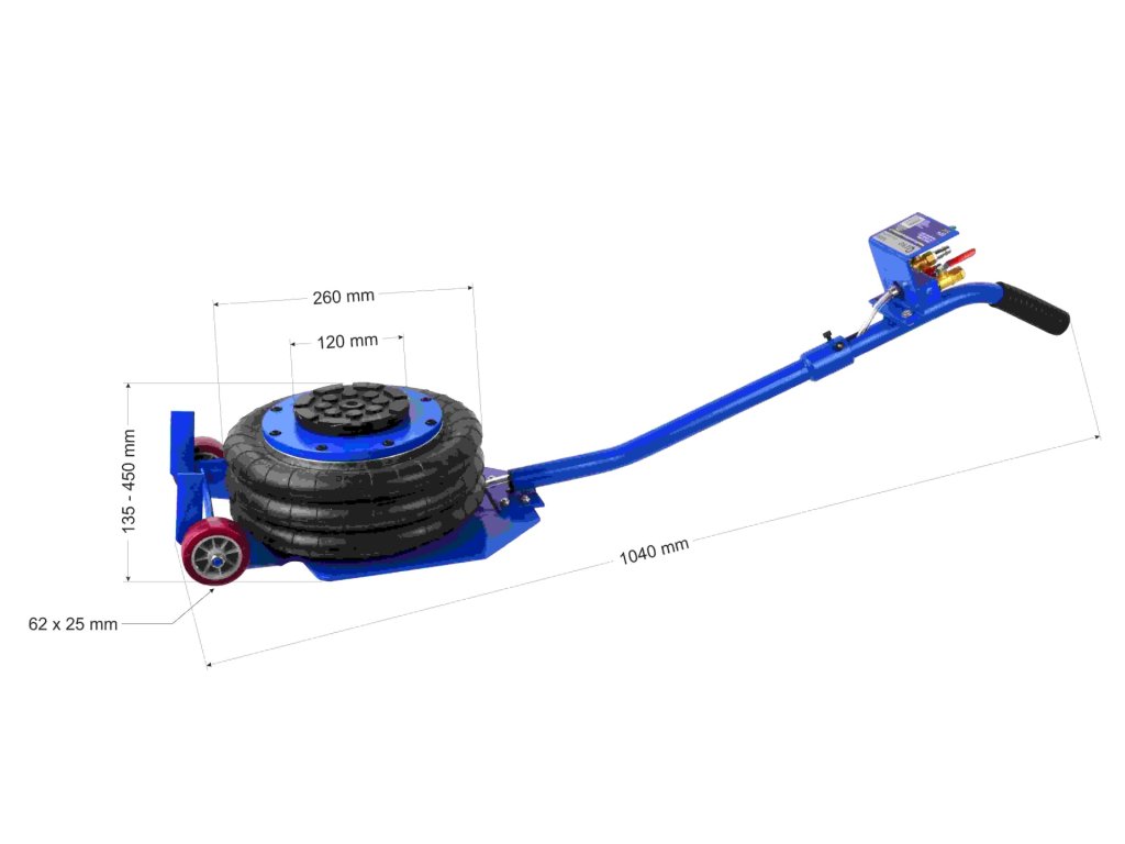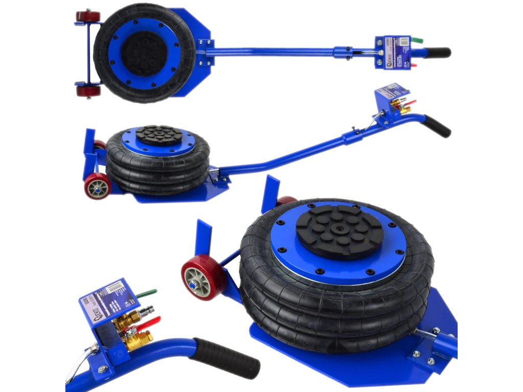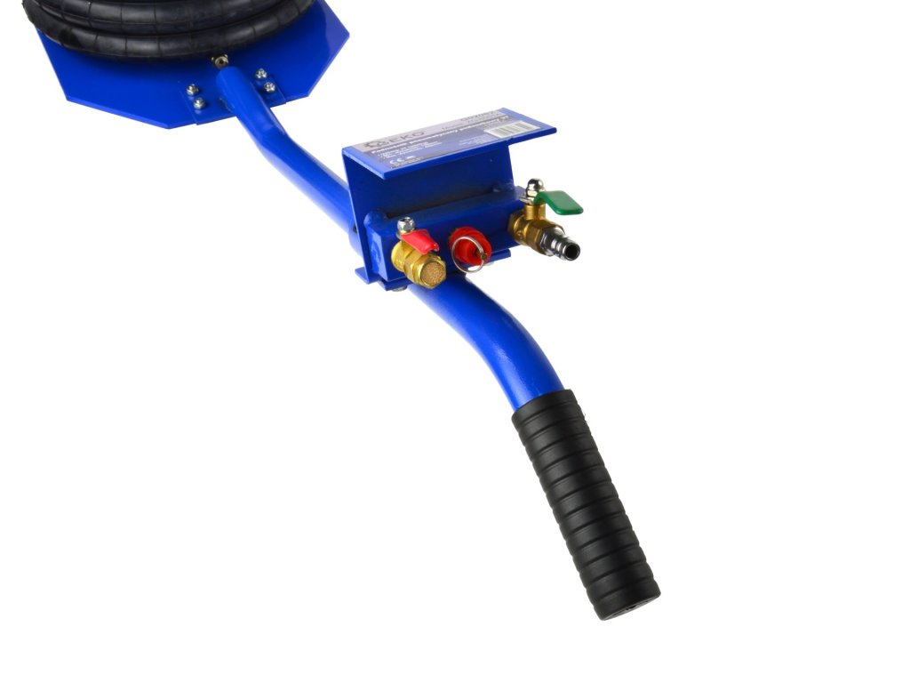 Az emelő két szeleppel van felszerelve: bemeneti és kimeneti. Ezek a szelepek biztosítják, hogy az emelő a légforrástól való leválasztás után is megőrzi pozícióját és nem süllyed le. Ezen kívül, a két keréknek és a hajlított fogantyúnak köszönhetően az áthelyezés egyszerű és gyors.