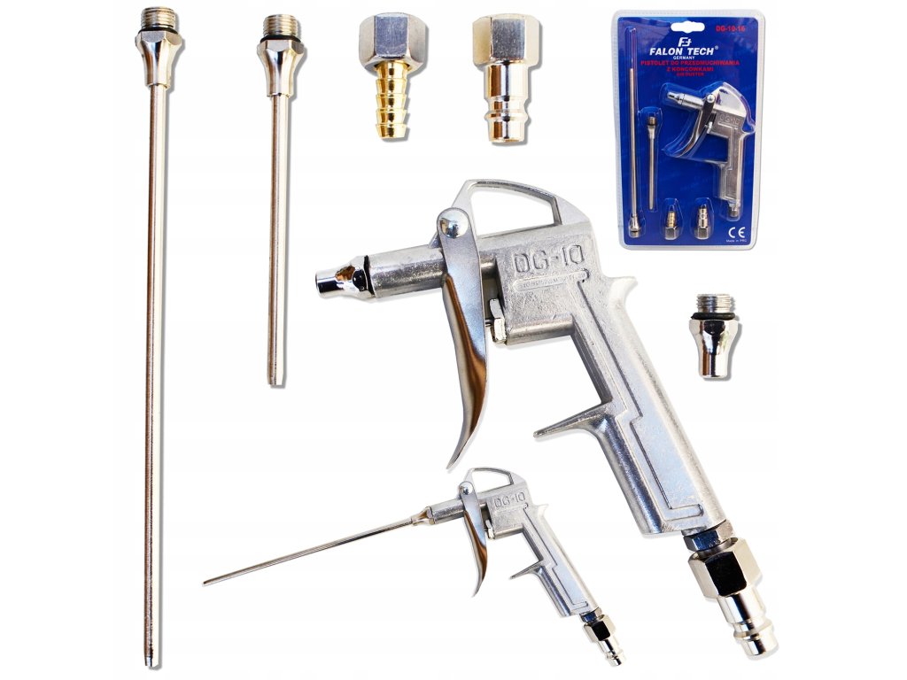 A pneumatikus ofukáló pisztoly hosszú fújóval ideális a por, homok, fadarabok és egyéb szennyeződések eltávolítására sűrített levegő segítségével. A praktikus készlet különböző hosszúságú fúvókákat tartalmaz, amelyek lehetővé teszik a rugalmas használatot különböző felületek és terek tisztításakor.