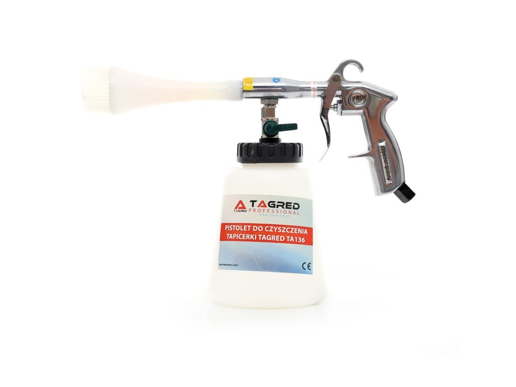 A működtetéséhez nem szükséges nagy kompresszor – elegendő 5 bar nyomás. A pisztoly reguláló rendszerrel van felszerelve, amely lehetővé teszi a tisztítószer adagolásának egyéni beállítását a tisztítandó felülethez igazodva.