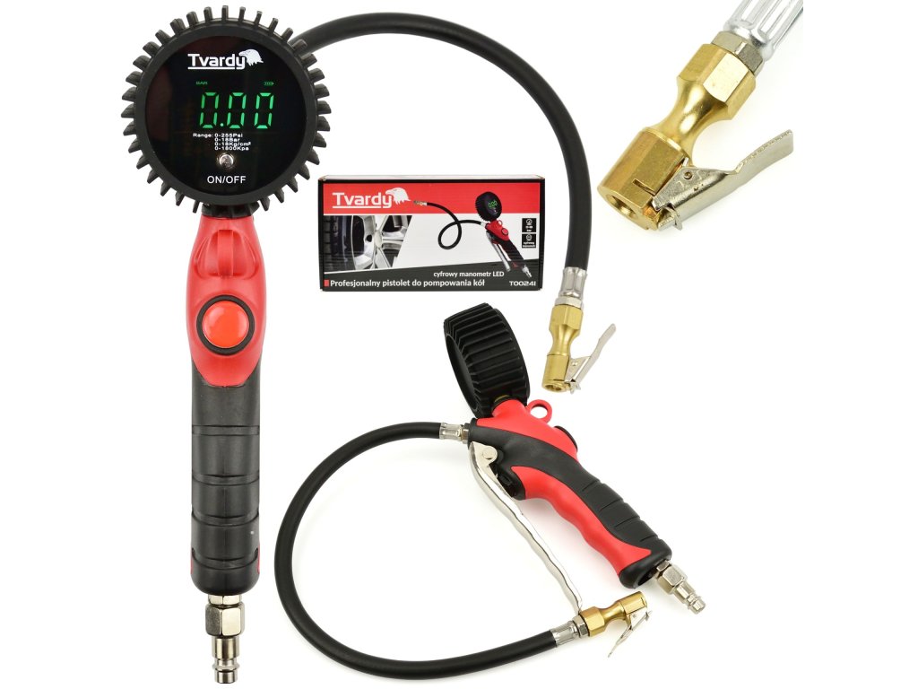 Professzionális autógumi felfújó pisztoly digitális LED manométerrel ideális eszköz személygépkocsik és teherautók kerekeinek felfújásához.