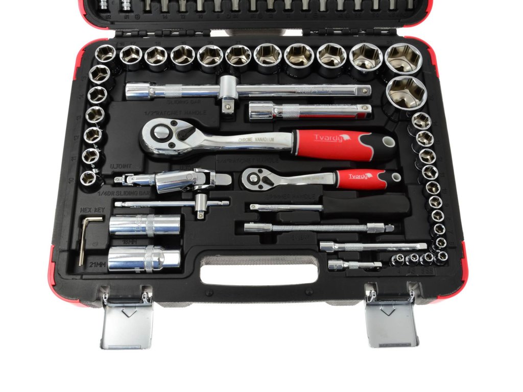 Professzionális dugókulcs készlet 94db 1/4"-1/2" 25GW T00101 ideális mindenki számára, aki a minőséget és megbízhatóságot követeli meg. A dugókulcsok rendkívül jó minőségű króm-vanádium acélból (CRV50BV30) készülnek, ami hosszú élettartamot biztosít számukra. A bitek megerősített S2 acélból készültek, így maximális ellenállást nyújtanak.