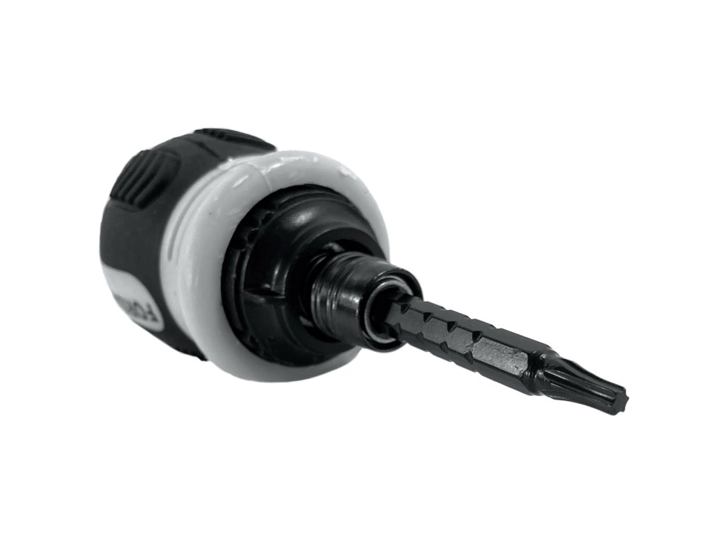 Racsnis csavarhúzó cserélhető kétoldalas bitekkel, kapcsolóval és beállítással
