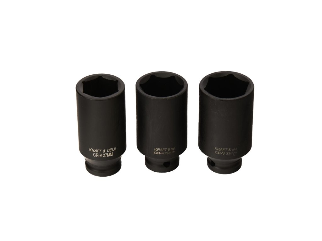 Professzionális Kraft&Dele márkájú ráccsal hajtott dugókulcsfejek készlet KD11749, amely pneumatikus szerszámok használatára készült, nehéz körülmények között és változó terhelés esetén dolgozik.