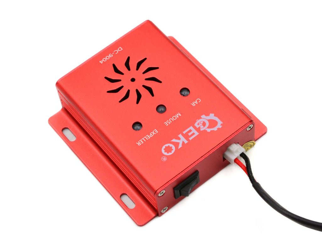 - A tápellátás kapcsolójának bekapcsolásakor az ellenőrző LED (piros fény) villog, az ultrahangos hullám nem aktív, és a készenléti áram 3 mA. Körülbelül 120 másodperccel az autó megállítása után a termék elkezdi kibocsátani az ultrahangos hullámokat: az ellenőrző LED pirosról zöldre vált, és az eszköz ultrahangos hullámokat bocsát ki automatikusan változó frekvencián (20–60 kHz). Amikor az autót újraindítják, a termék deaktiválódik (a piros fény villogni kezd).