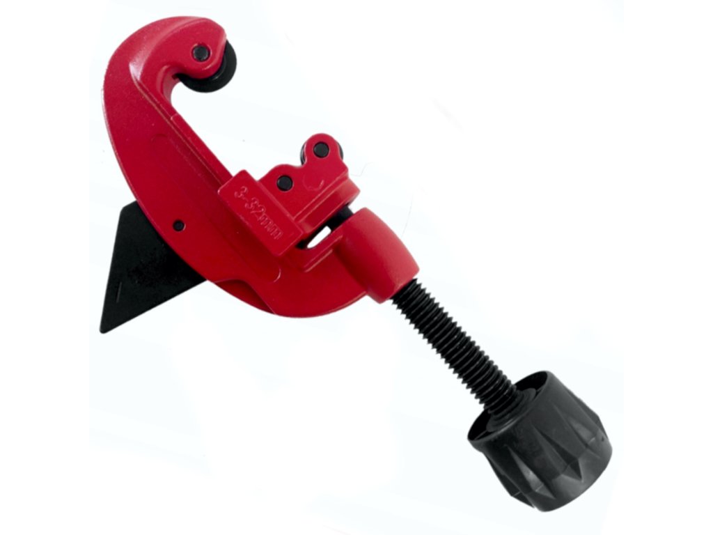- Csővágó, amelyet 3-32 mm átmérőjű csövek gyors és egyenletes vágására terveztek. A kiváló minőségű ötvözött acélból készült vágókerék és a négy vezetőgörgő precíz vágást biztosít a csövek deformációja nélkül.