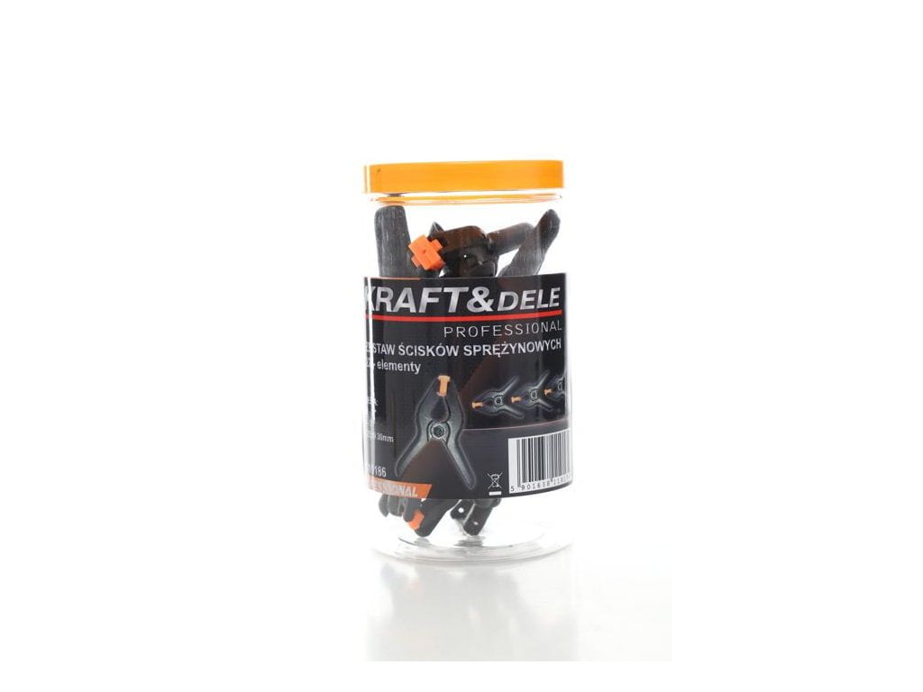 Rugós szorítókészlet 2/3 KD10186 a Kraft&Dele cseh gyártó Professional™ sorozatának 22 darab kiváló minőségű professzionális szerszámból álló készlet. Jellemző rá a sokoldalúság, és a pofáik 30 mm-esek. A készlet 4 darab rugós szorítót tartalmaz 3 hüvelykes hosszúságú, és 18 darabot 2 hüvelykes hosszúságú, ami ideálissá teszi különféle javítási munkákhoz és a nehezen hozzáférhető helyekhez. Az egész készlet egy műanyag dobozban található csavaros fedéllel, amely rendet és könnyű tárolást biztosít.