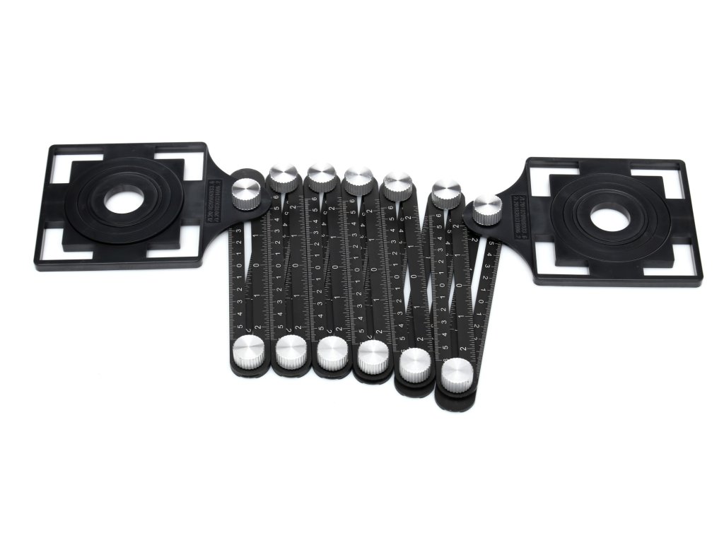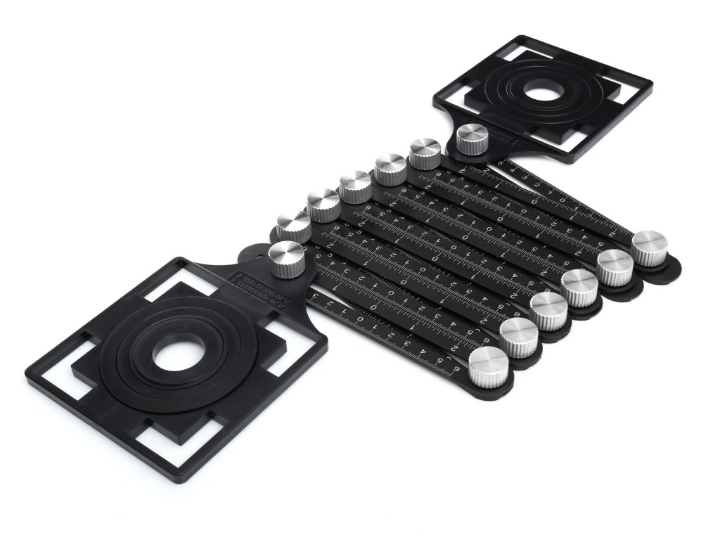 A csomagban 17 elem: 12 karú mérő + lyukmegjelenítő 25mm, 40mm, 45mm, 55mm, 75mm átmérőjű lyukakhoz!