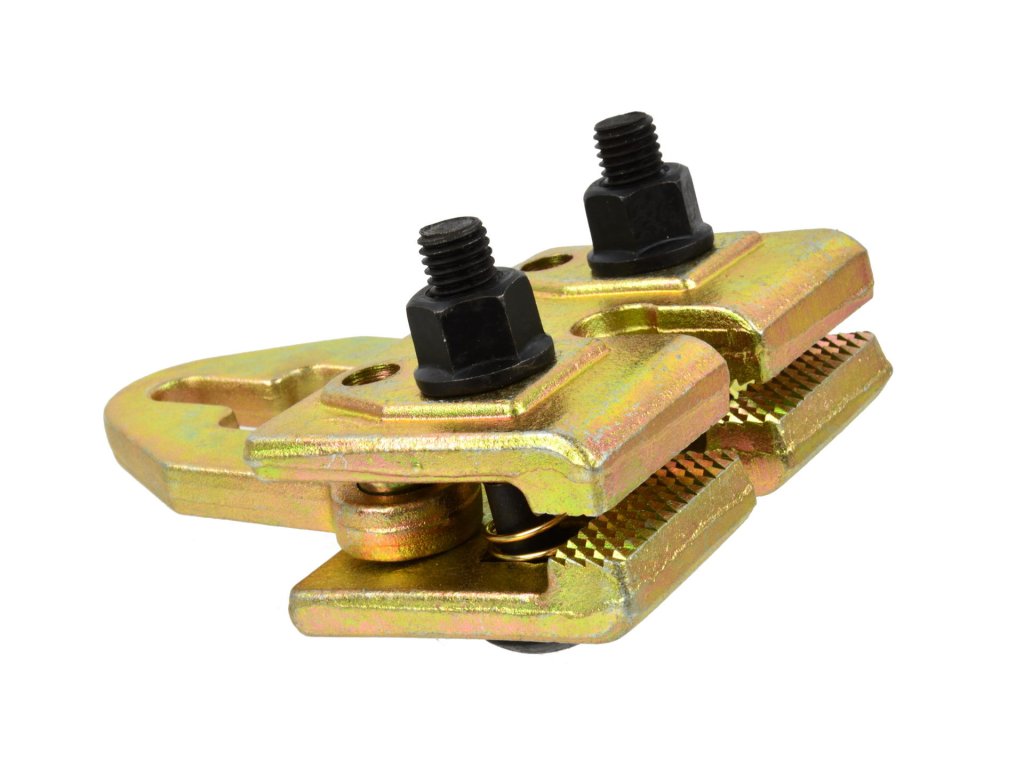 Kétirányú klampírszorító lehetővé teszi a karosszéria egyidejű feszítését két irányba. Zúzott állkapcsok növelik a lemez biztos fogását, ami szilárd és biztonságos rögzítést garantál a munkavégzés során.
