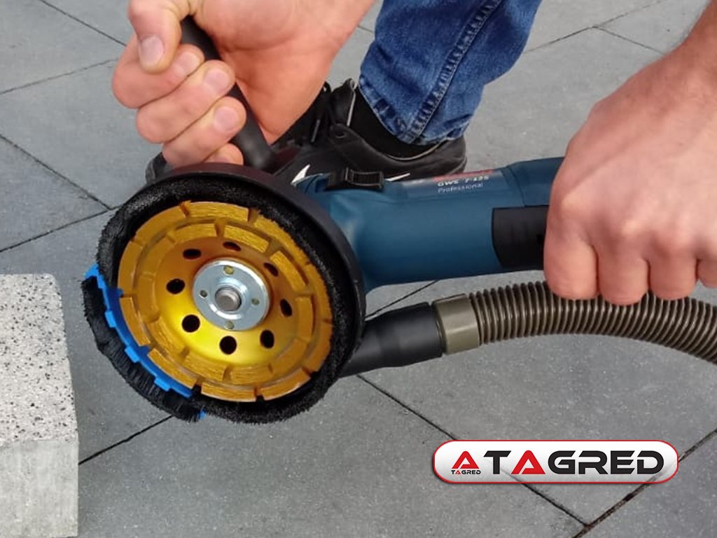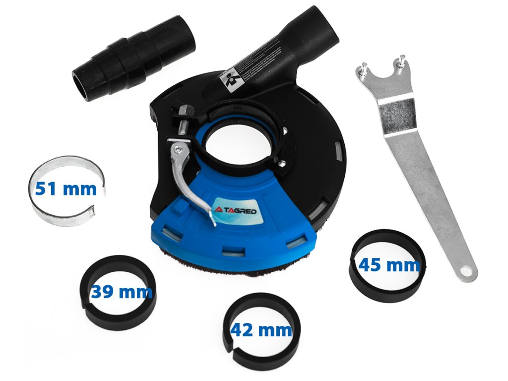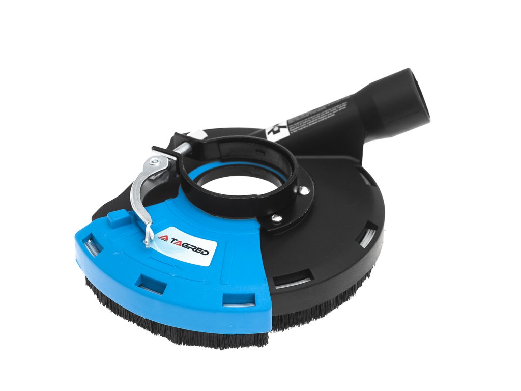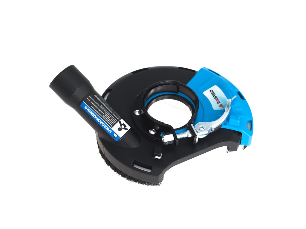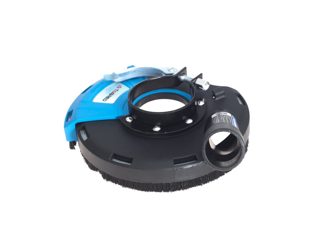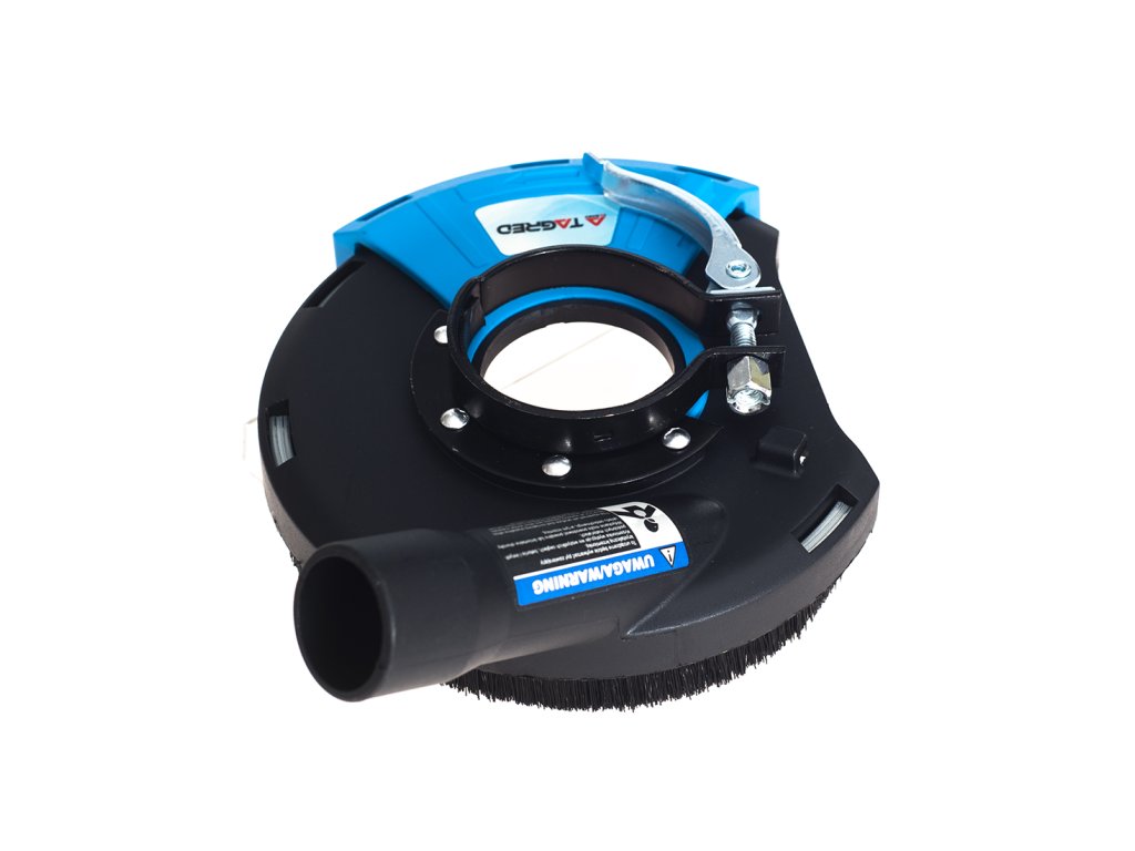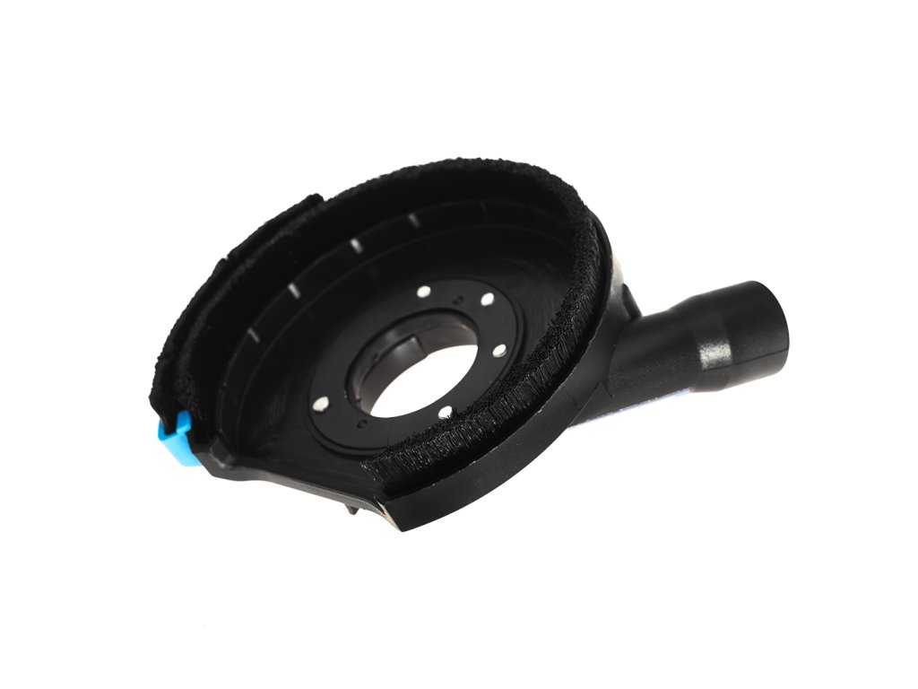 A Sarokcsiszolóhoz készült szívó burkolat kefés kosárral ideális megoldást kínál a hatékony védelem érdekében a csiszolás során. Ez az adapter biztosítja a maximális káros por elszívását sima felületeken végzett munka közben, és a szabványos fém burkolat helyett a vágóorsó gallérjára rögzíthető, ami garantálja a szoros és szilárd kapcsolatot a csiszolóeszközzel. A működés során minden stabil marad, és a por szinte 100%-ban elszívódik.