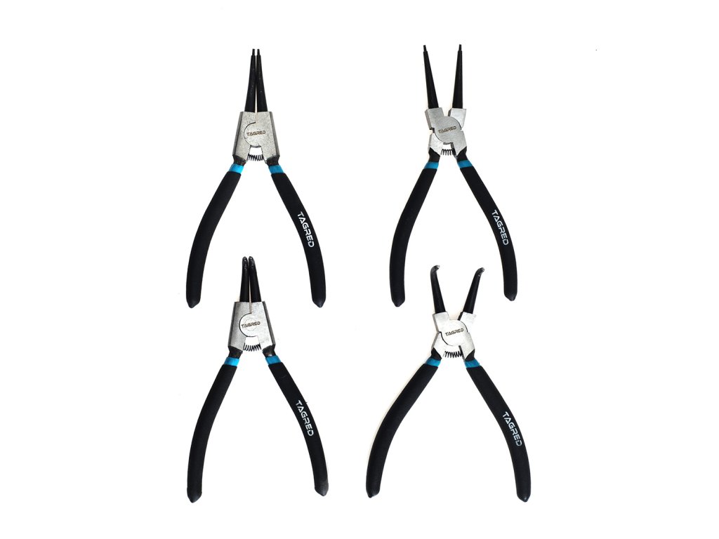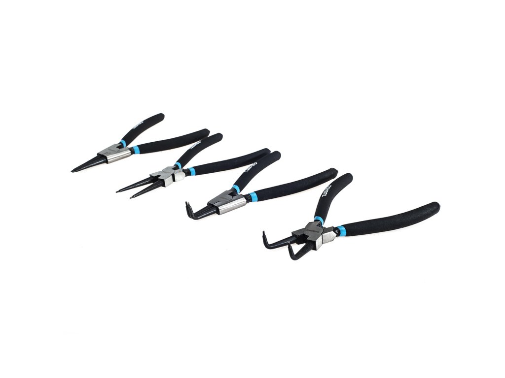 A készlet optimálisan van tervezve a belső és külső biztosítókörök kezelésére. Tartalmaz fogókat hajlított és egyenes végződésekkel, amelyek megkönnyítik a manipulációt. A készlet 2 típusú biztosítást tartalmaz: belső (belső burkolat terpesztő) és külső (szorító, a hengeren kívül). A fogók króm-vanádium acélból készültek, és gumi burkolattal rendelkeznek a jobb fogás érdekében. Ezek az eszközök ideálisak rugós gyűrűk szerelésére és eltávolítására.
