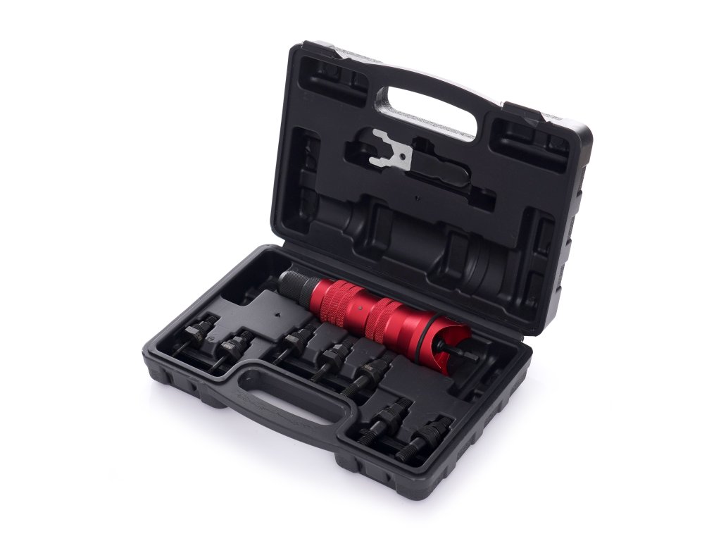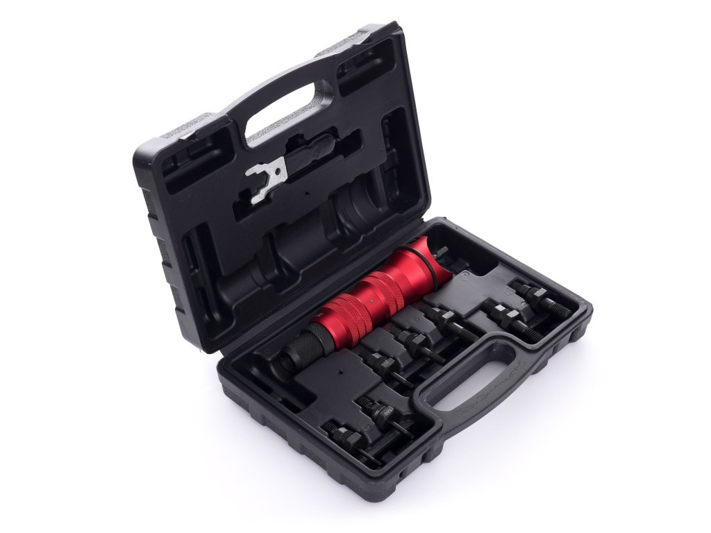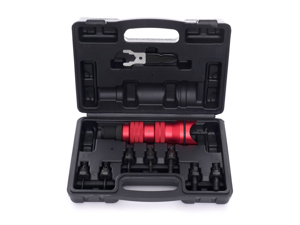 Az egész készülék egy praktikus és kompakt szerszámkofferben van elhelyezve. Alkalmas szegecsekhez: alumínium, réz, acél, rozsdamentes acél.