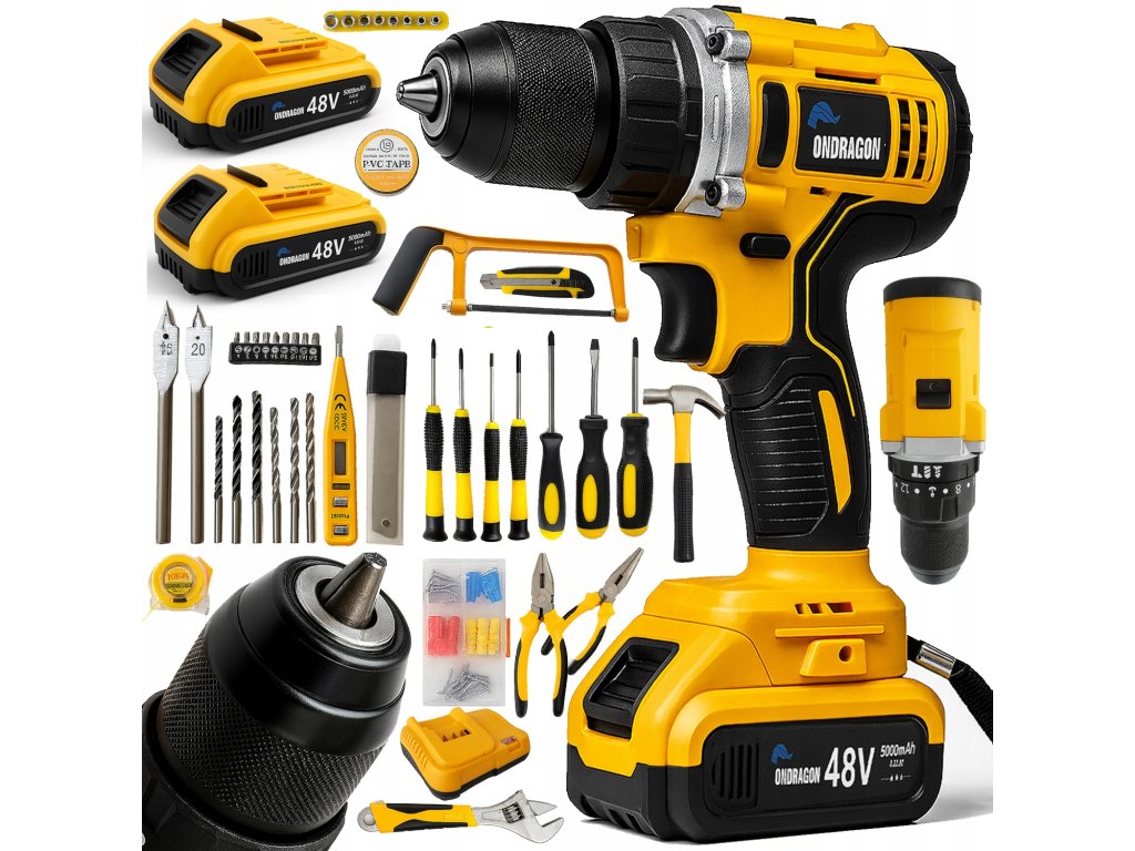 Két nagy teljesítményű 48 V-os 5,0 Ah-s akkumulátor biztosítja a hosszú, megszakítás nélküli munkaórákat, míg a LED-es háttérvilágítás , a 20 fokozatú nyomatékállítás és a kétsebességes hajtómű precíz és kényelmes vezérlést tesz lehetővé. A teljes készlet egy robusztus tokban található, széleskörű felszereléssel fúráshoz, csavarozáshoz és kisebb szerelvényekhez.