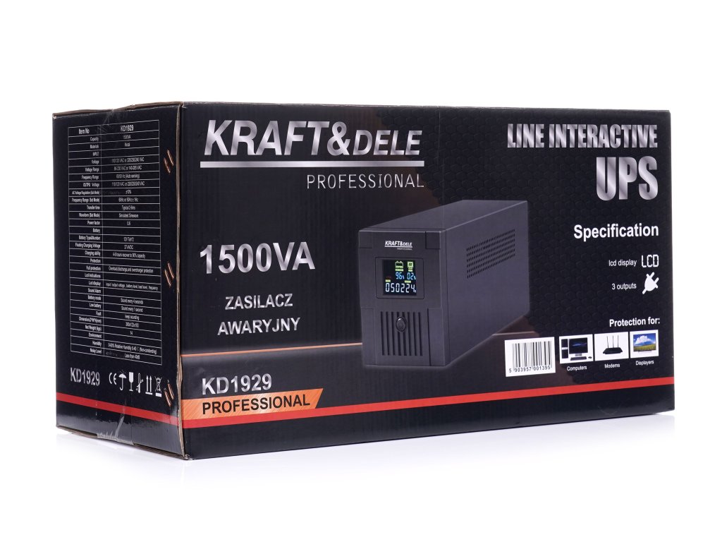 Szünetmentes áramforrás / UPS 1500 VA LCD-kijelzős KD1929 a Kraft&Dele LCD-kijelzős UPS-ek közé tartozó készülékek közé tartozik, kiemelkedő megbízhatósággal és tartóssággal.