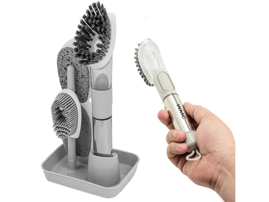 A WMC TOOLS konyhai mosogatószer-adagolóval ellátott kefe megkönnyíti és felgyorsítja a mosogatást. Az adagolóval és 4 cserélhető tartozékkal ellátott kefe nélkülözhetetlen segítőtárs minden háztartásban.