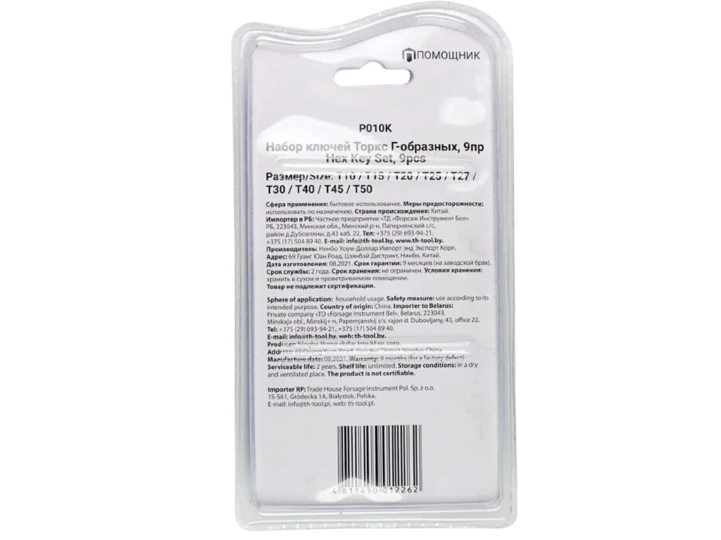 - Típus : TORX rúdkulcsok (L alakú)