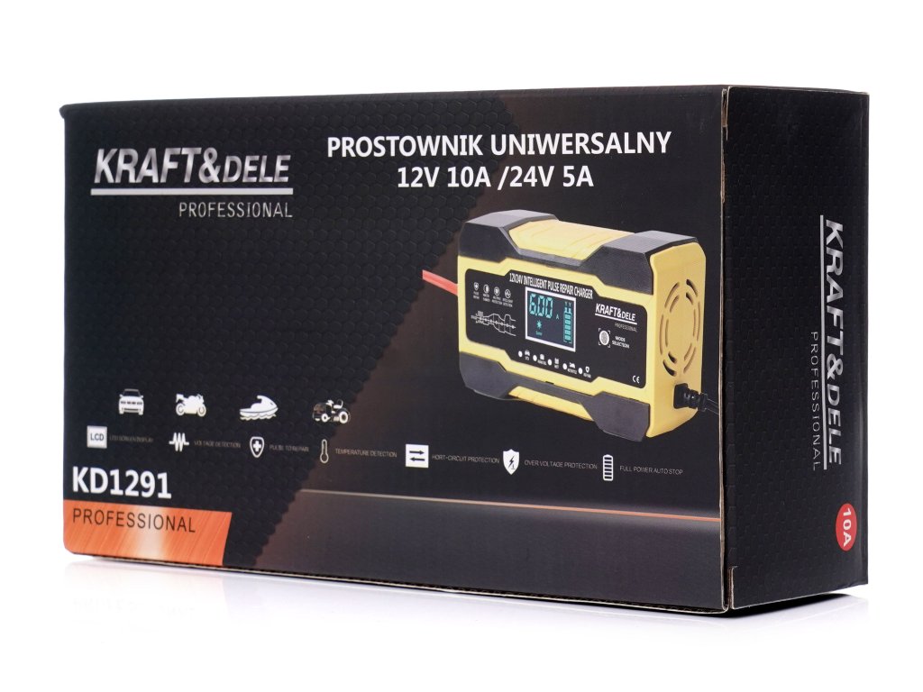 Az Univerzális akkumulátortöltő 12/24 V 5 A/10 A KD1291 a Kraft&Dele cseh cég megbízható készüléke, amely akkumulátorok töltésére szolgál.
